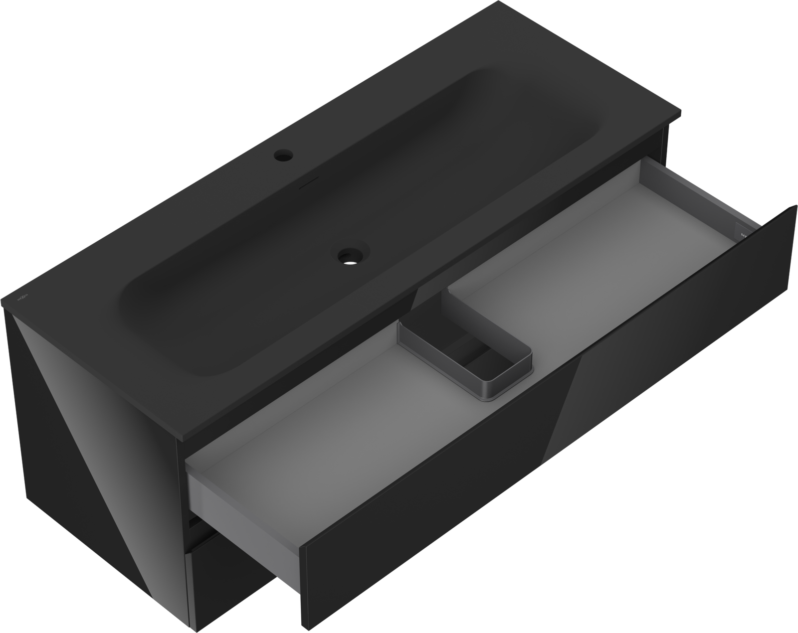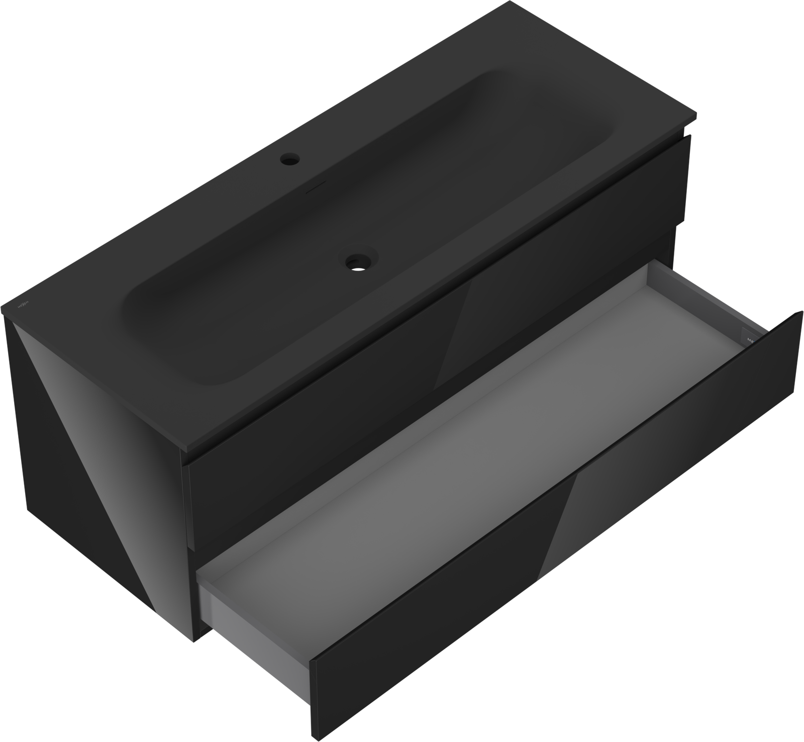 Mexen Orio szafka łazienkowa 120 cm z umywalką Vela, 2 szuflady, czarna połysk/czarna mat - 91A10-12047-2-BFF70-W23M71