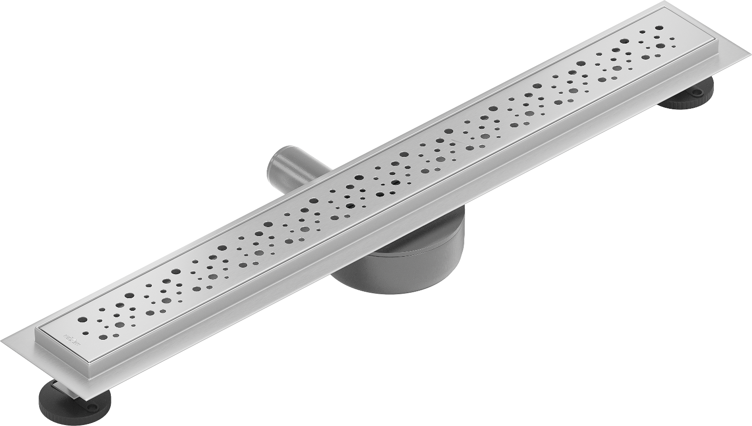 Odpływ jest wyposażony w regulowane nóżki, które umożliwiają dopasowanie odpowiedniej wysokości odpływu oraz wypoziomowanie na nierównej powierzchni. W ten sposób odpływ jest jeszcze lepiej dopasowany do warunków danej łazienki.