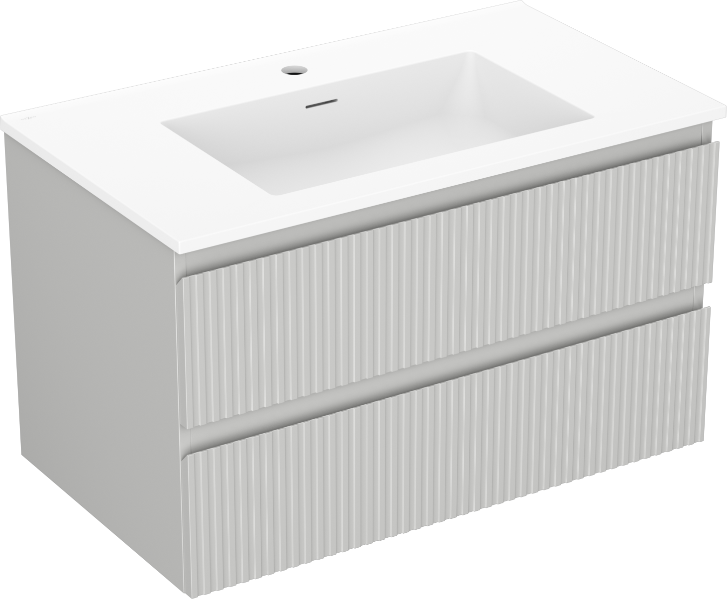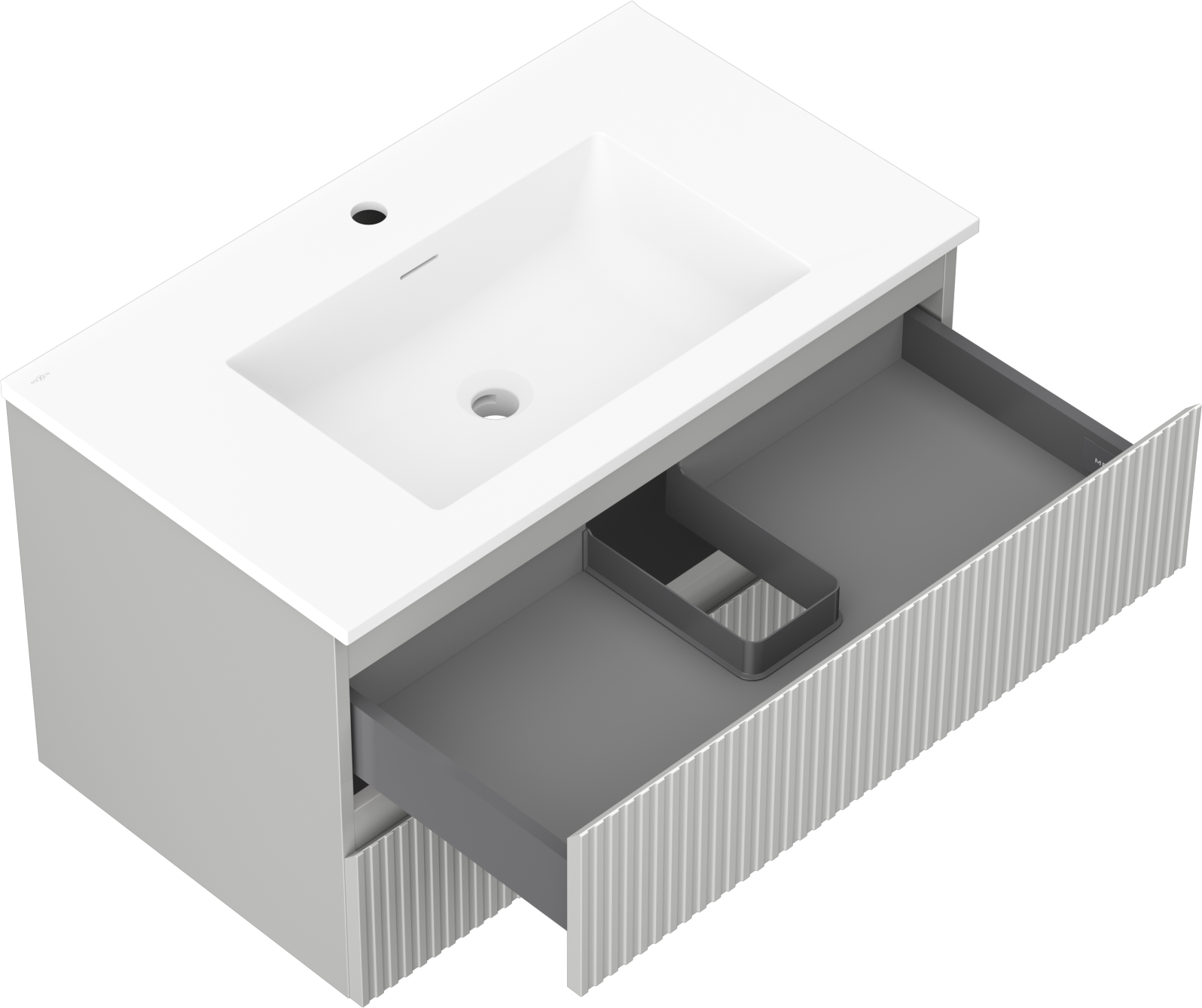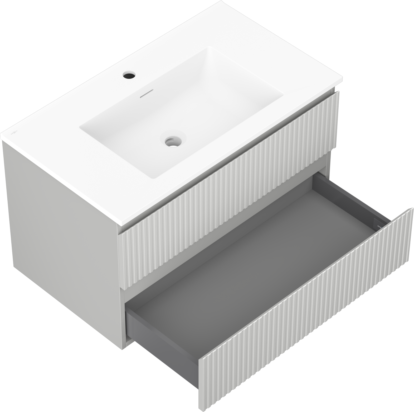 Mexen Rivel szafka łazienkowa 80 cm z umywalką Otis, 2 szuflady, ryflowana , szara mat/biała mat - 91A20-08047-2-BFF62-W18M01