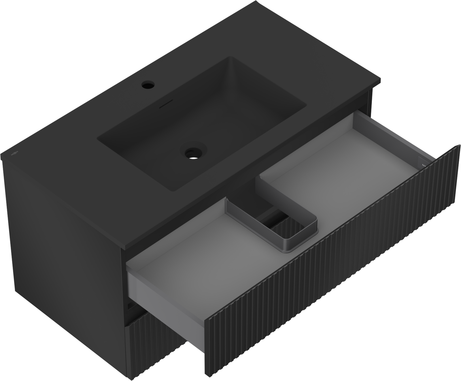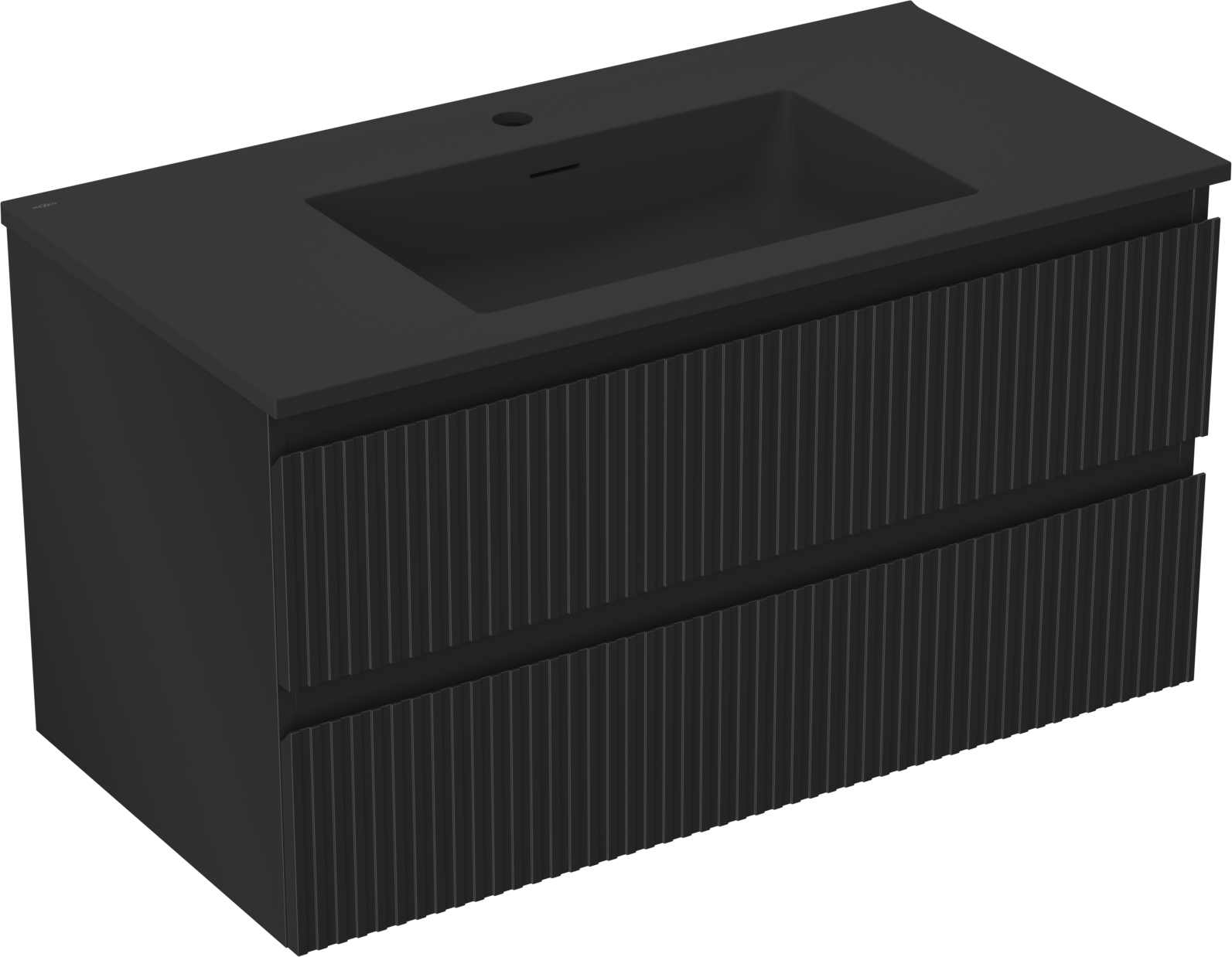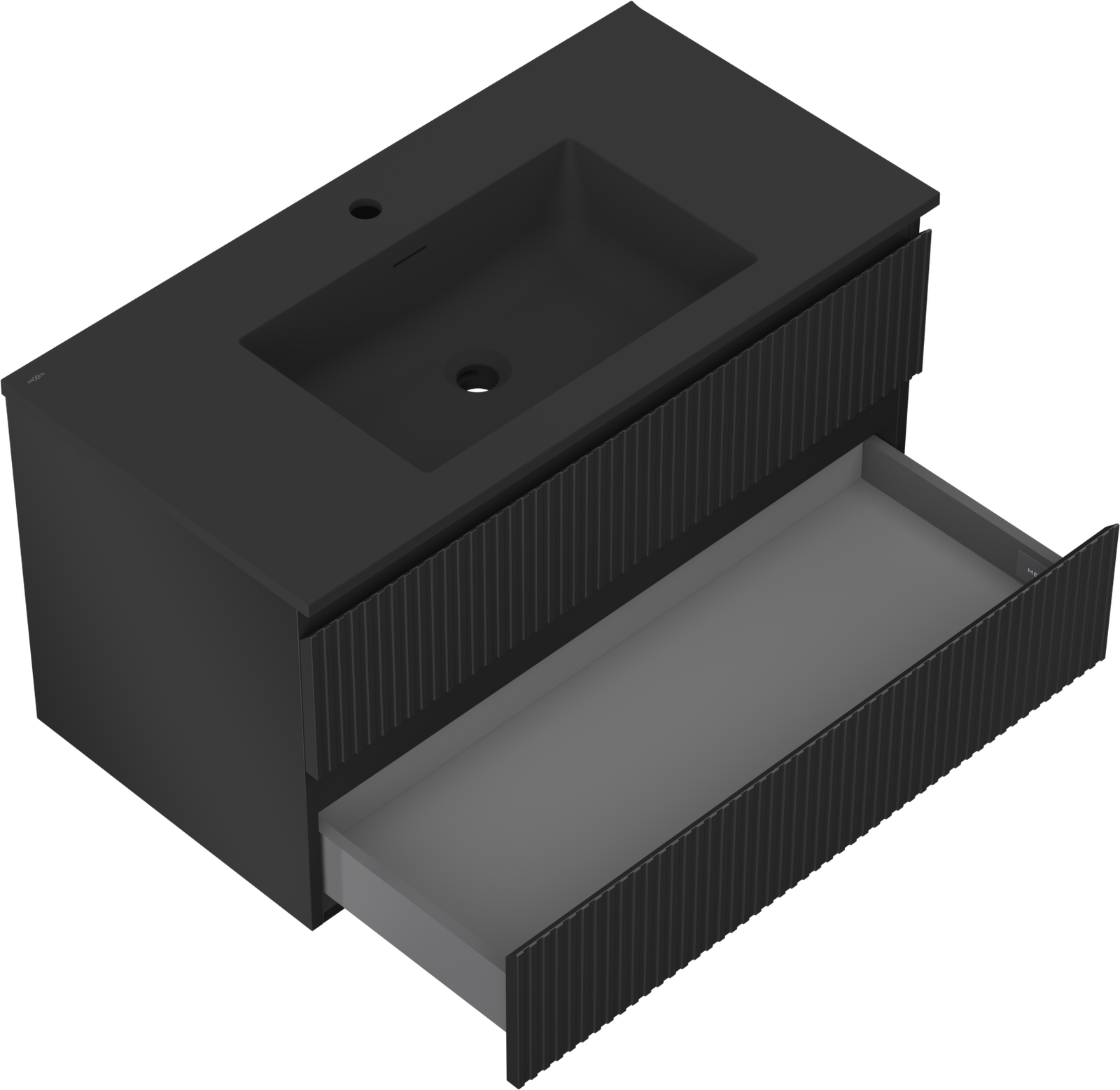 Mexen Rivel szafka łazienkowa 90 cm z umywalką Otis, 2 szuflady, ryflowana , czarna mat - 91A20-09047-2-BFF71-W18M71