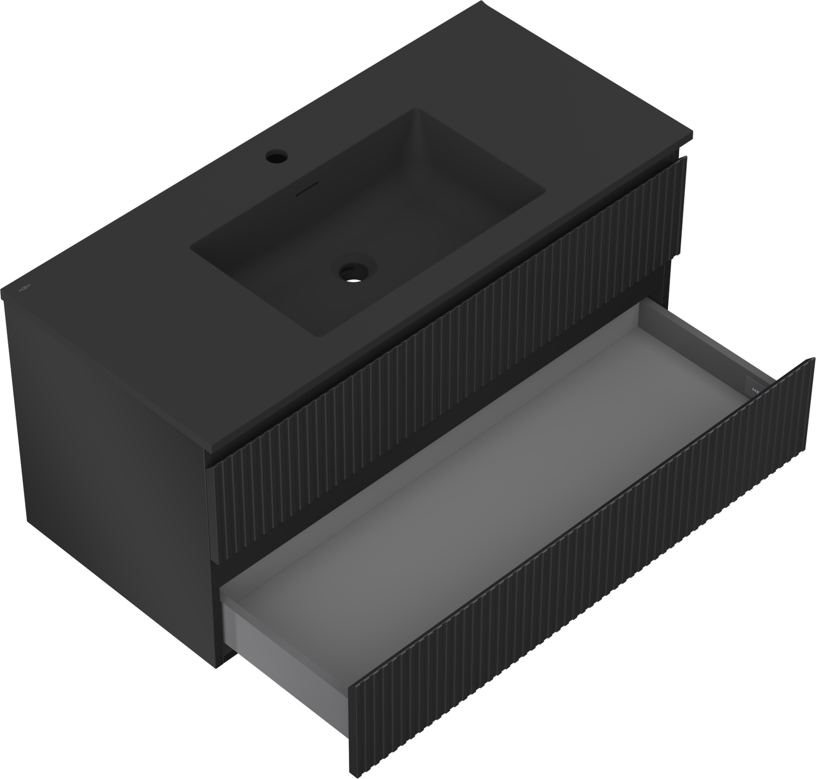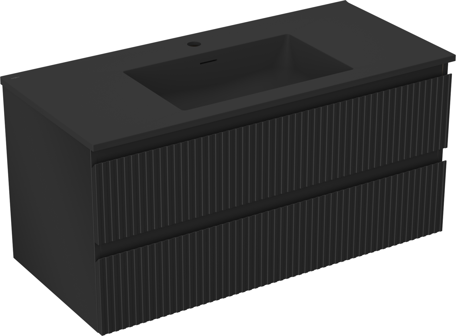 Mexen Rivel szafka łazienkowa 100 cm z umywalką Otis, 2 szuflady, ryflowana , czarna mat - 91A20-10047-2-BFF71-W18M71