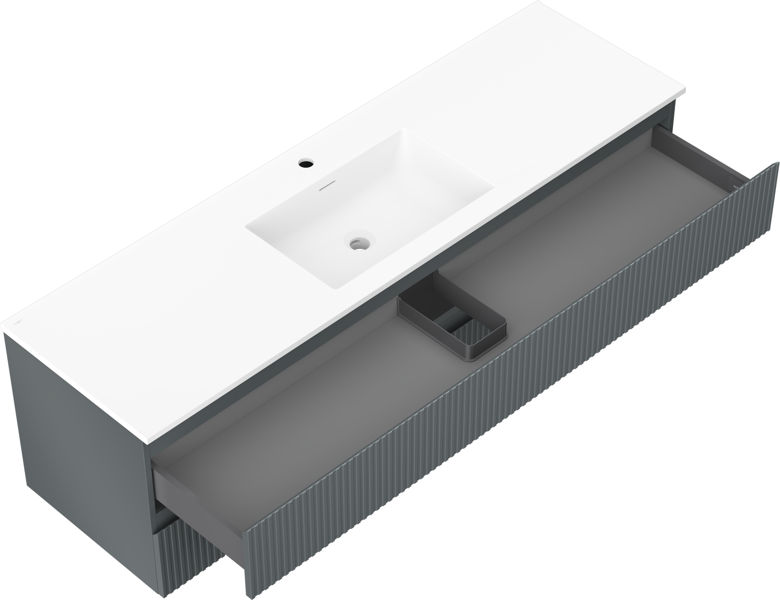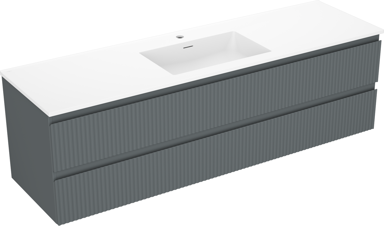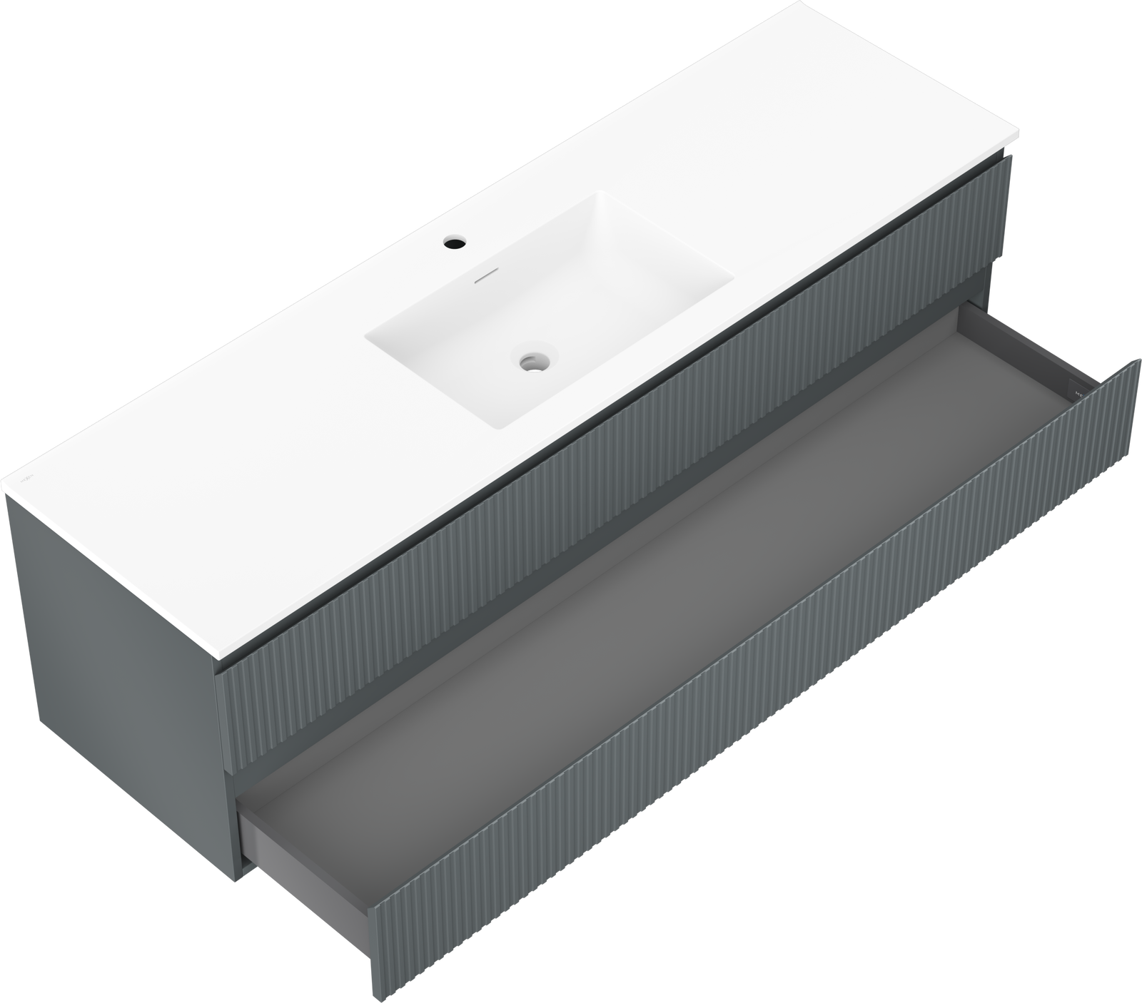 Mexen Rivel szafka łazienkowa 160 cm z umywalką Otis, 2 szuflady, ryflowana , grafit mat/biała mat - 91A20-16047-2-BFF66-W18M