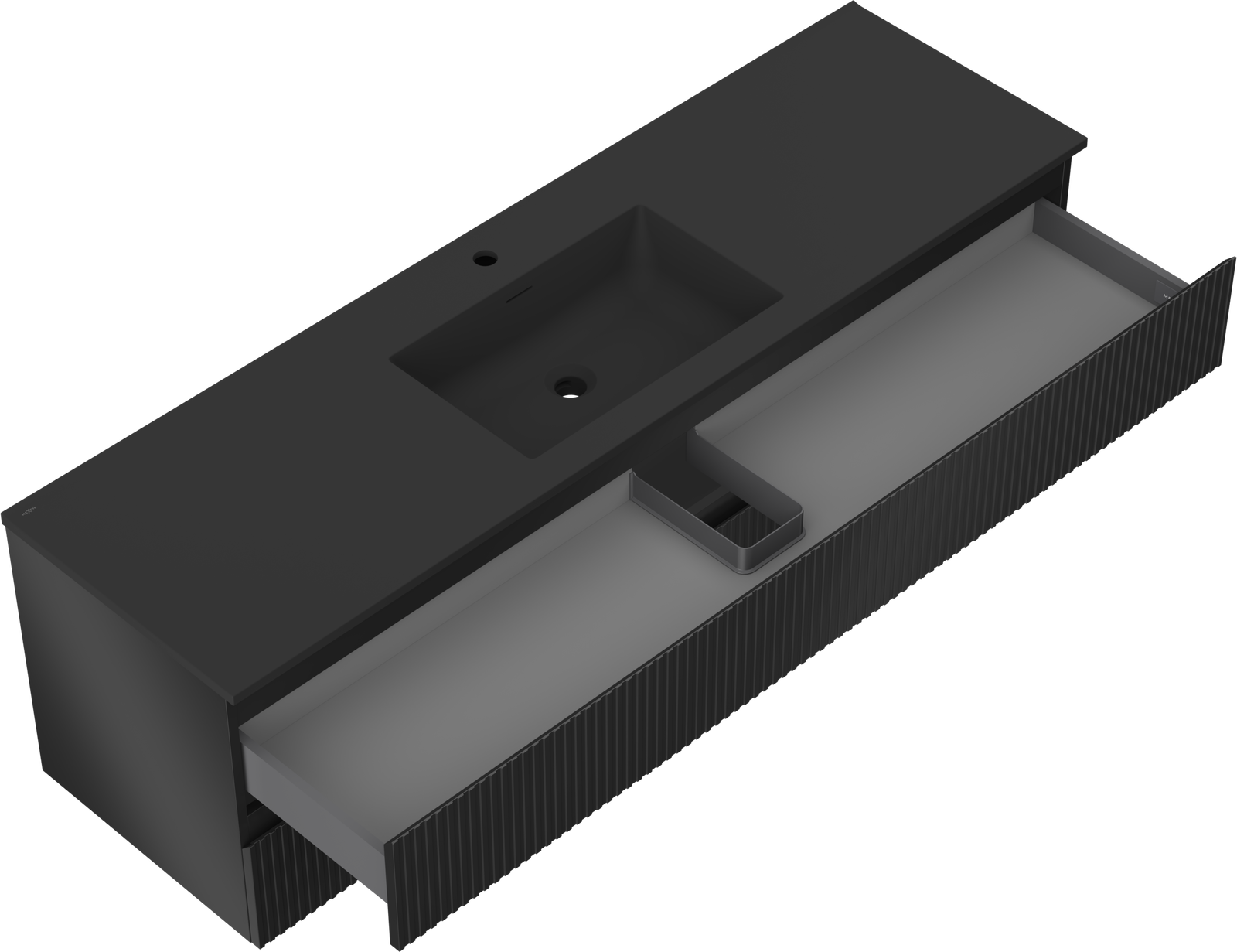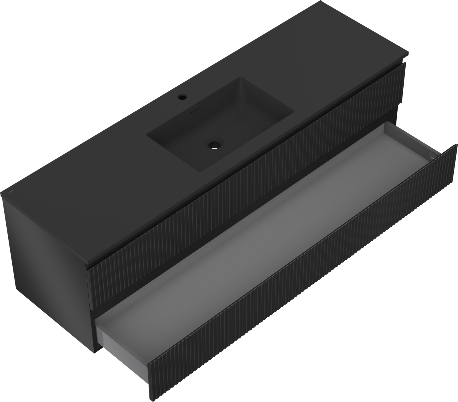 Mexen Rivel szafka łazienkowa 160 cm z umywalką Otis, 2 szuflady, ryflowana , czarna mat - 91A20-16047-2-BFF71-W18M71
