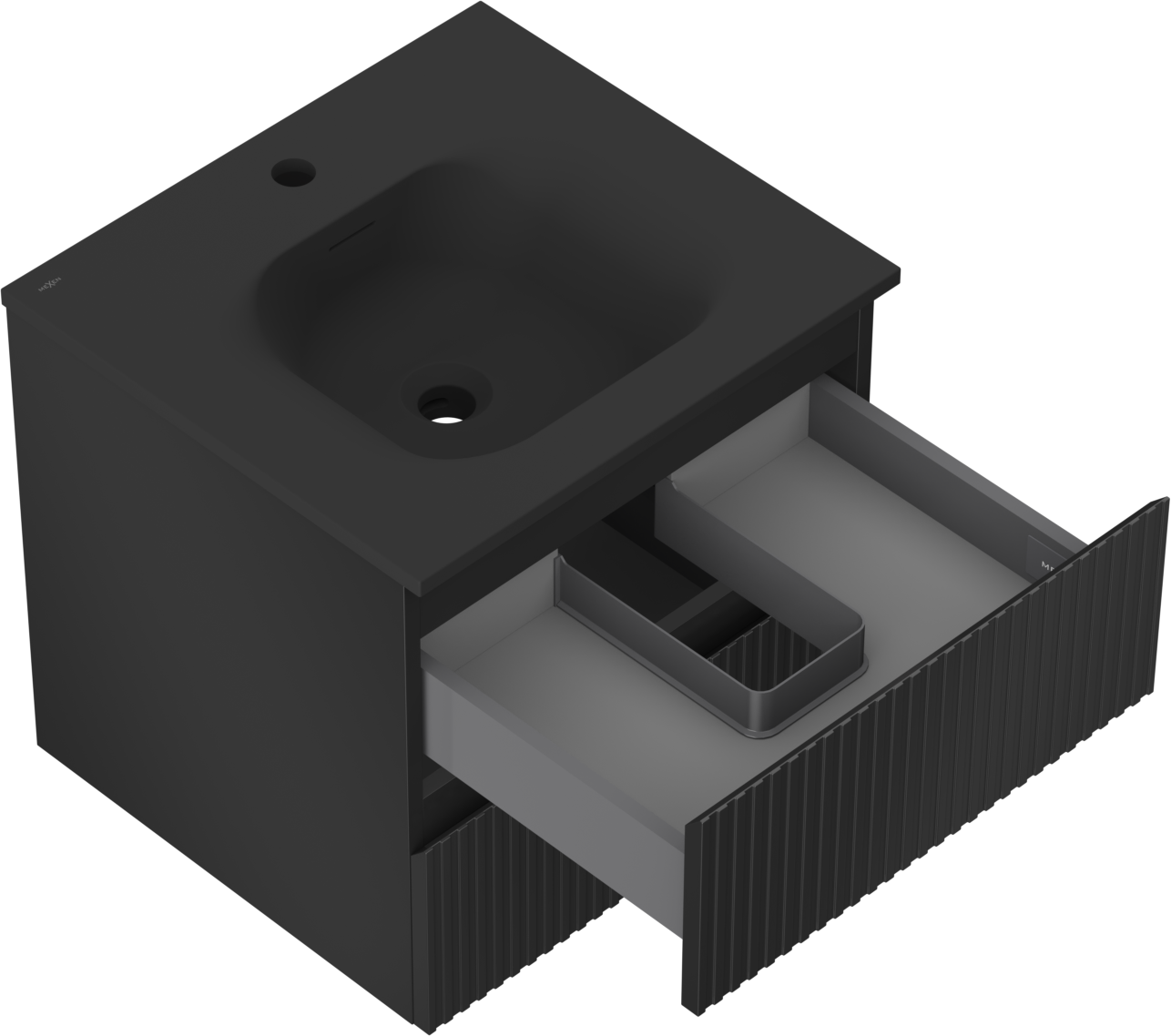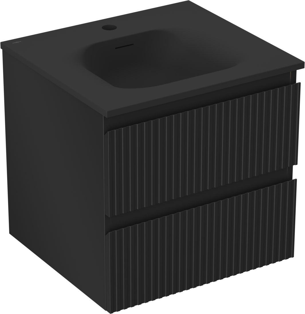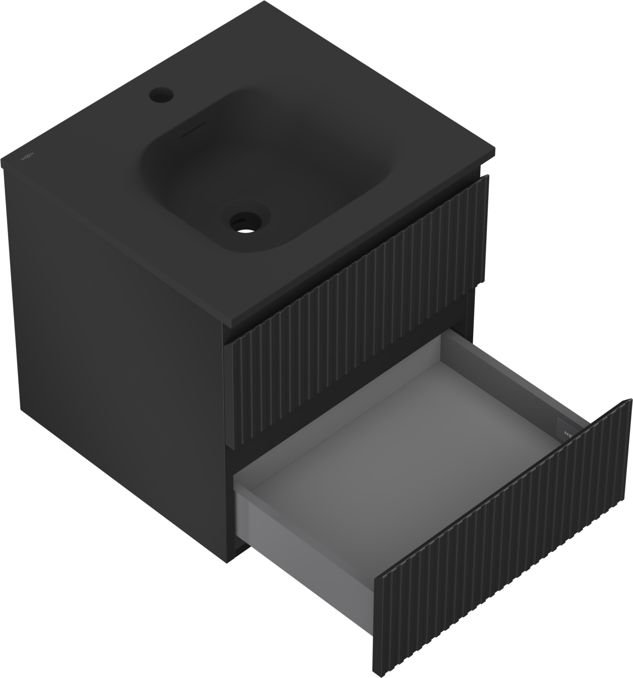 Mexen Rivel szafka łazienkowa 50 cm z umywalką Vela, 2 szuflady, ryflowana , czarna mat - 91A20-05047-2-BFF71-W23M71