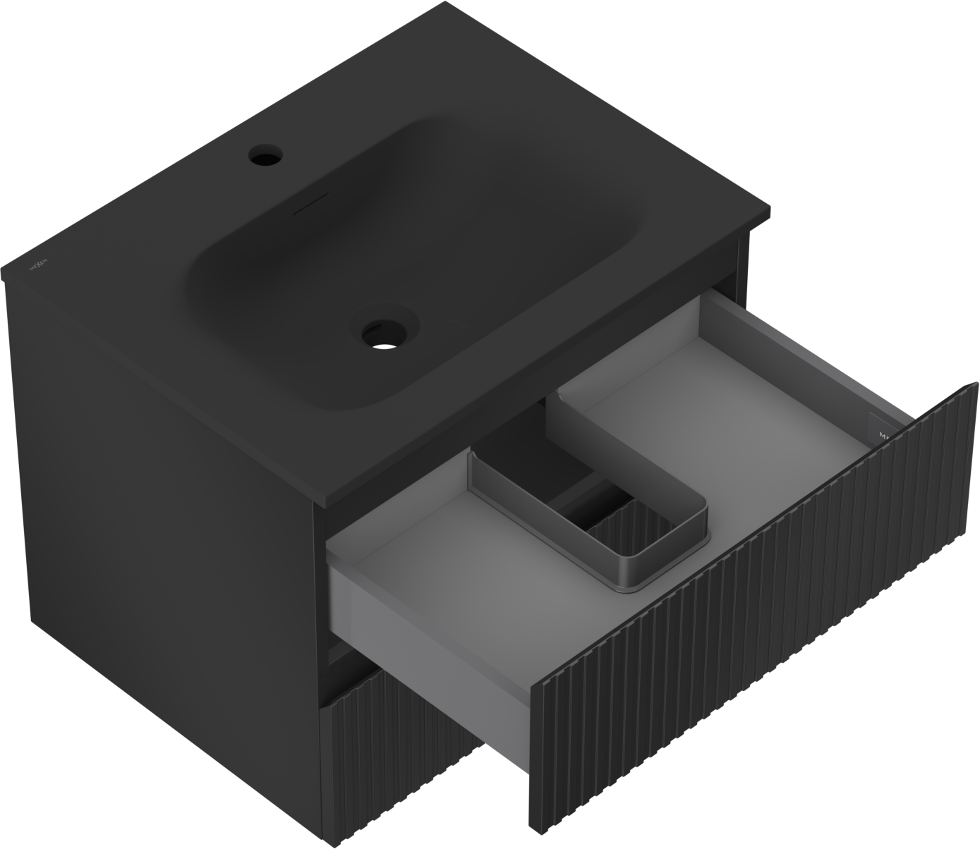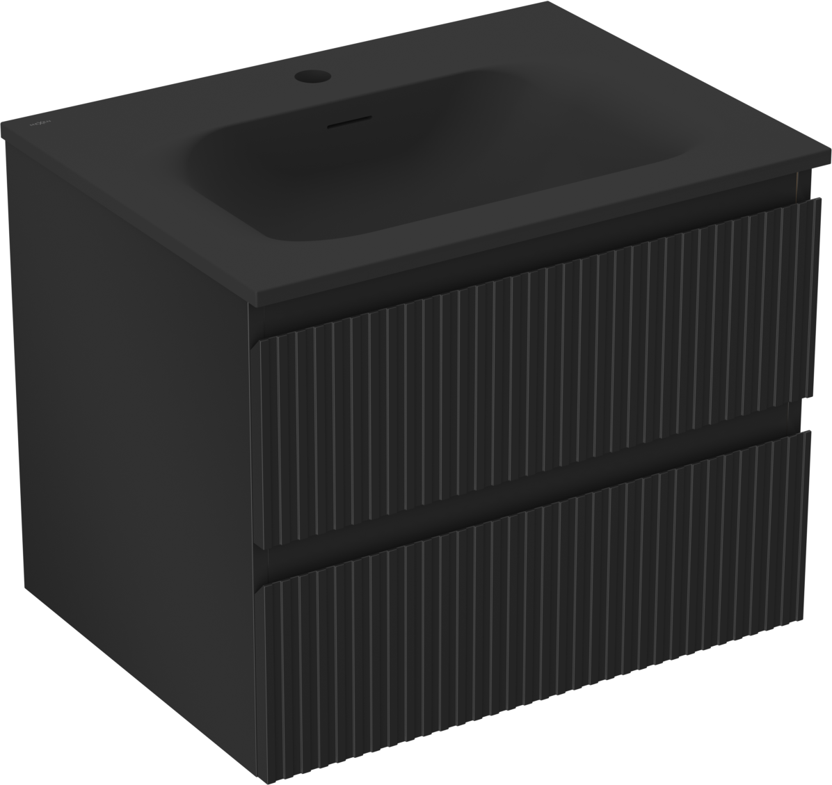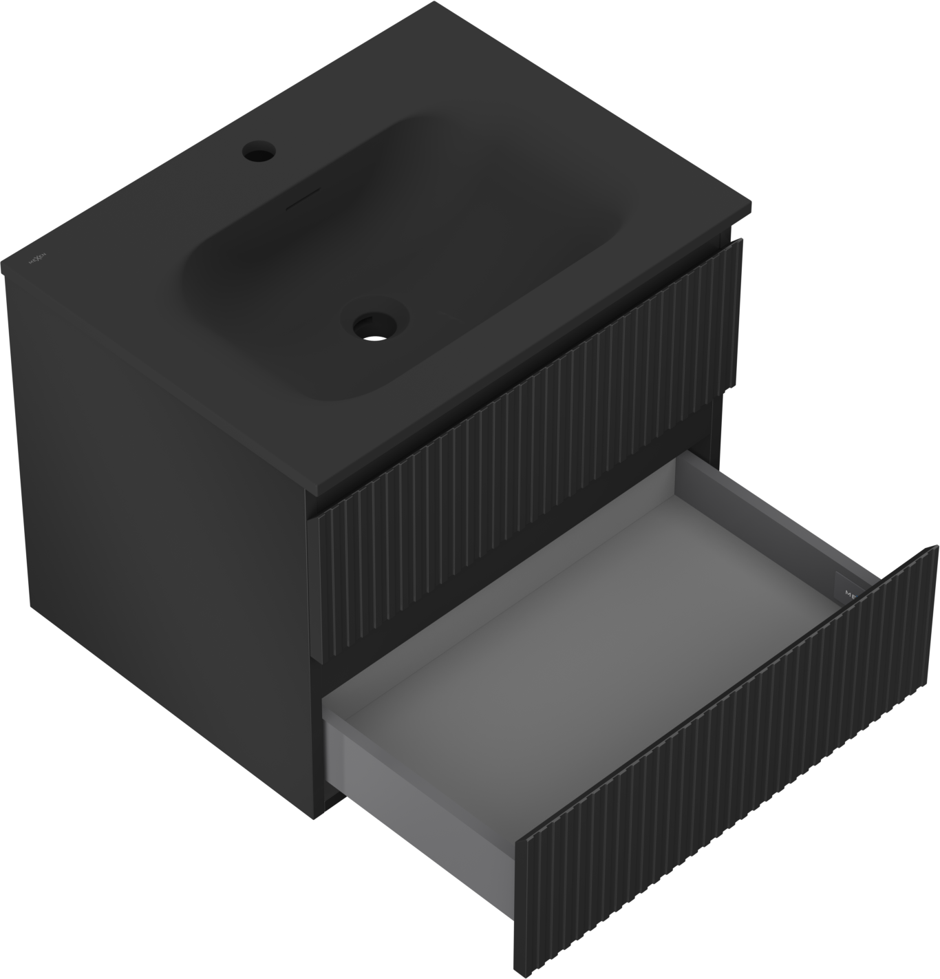 Mexen Rivel szafka łazienkowa 60 cm z umywalką Vela, 2 szuflady, ryflowana , czarna mat - 91A20-06047-2-BFF71-W23M71