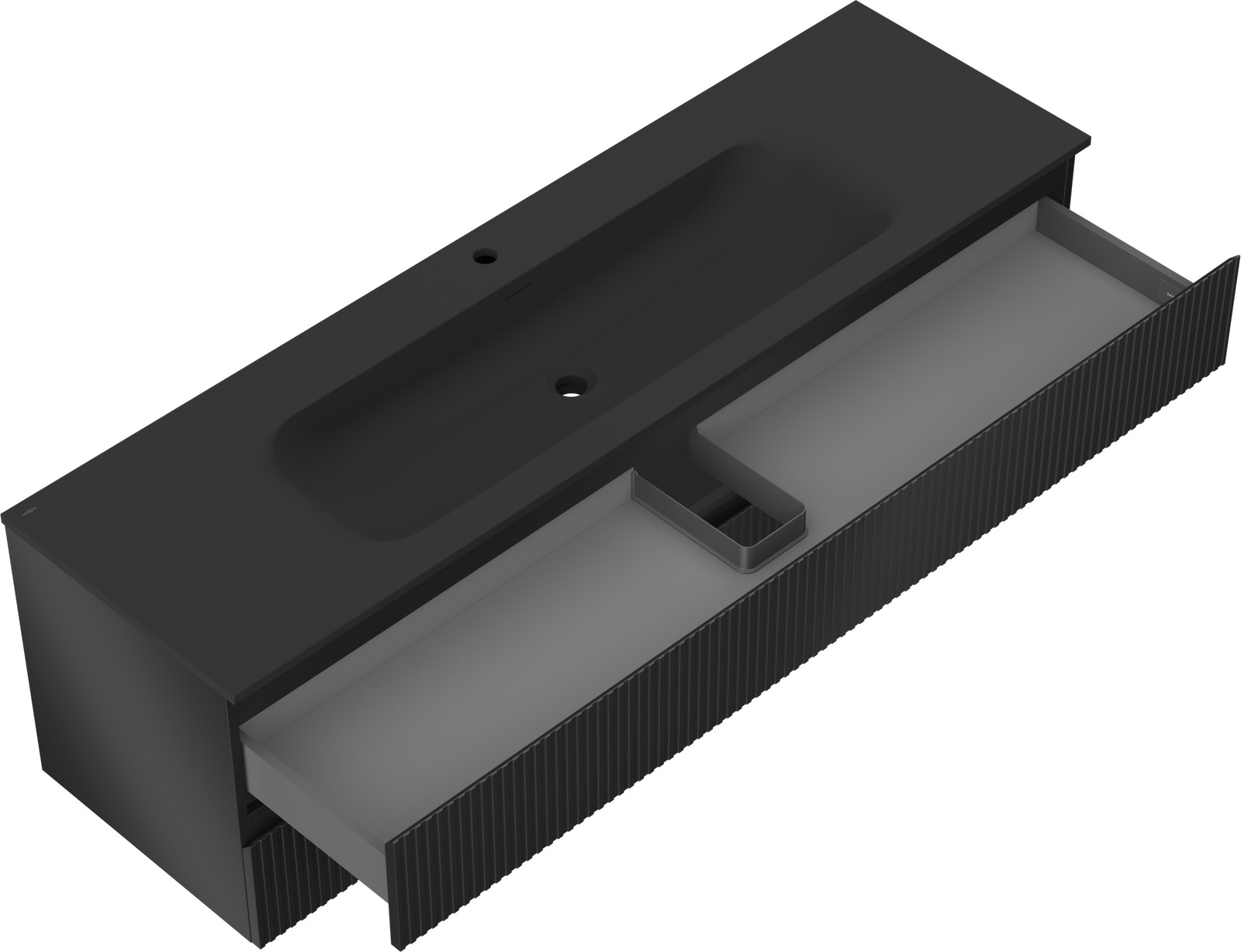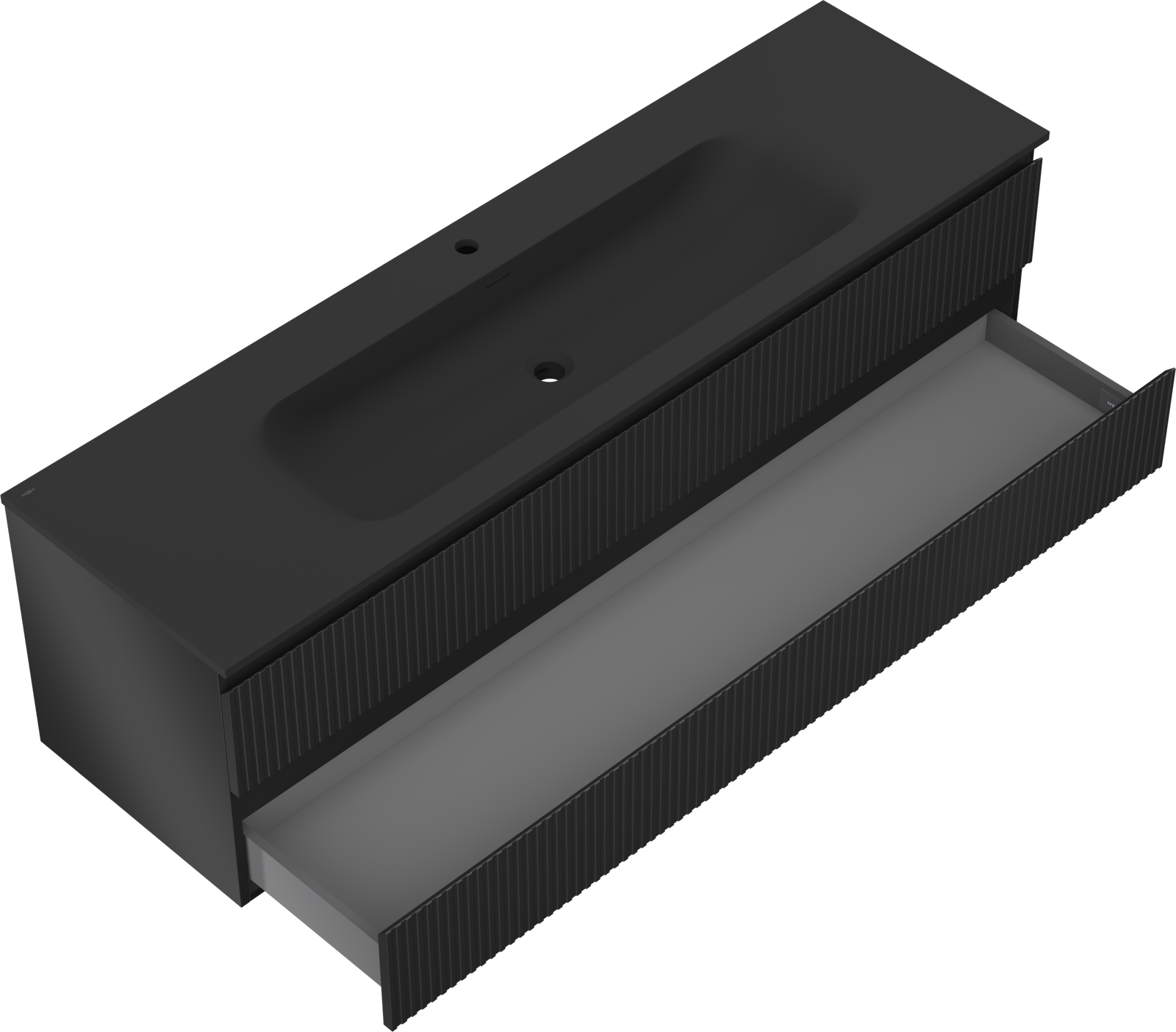 Mexen Rivel szafka łazienkowa 160 cm z umywalką Vela, 2 szuflady, ryflowana , czarna mat - 91A20-16047-2-BFF71-W23M71