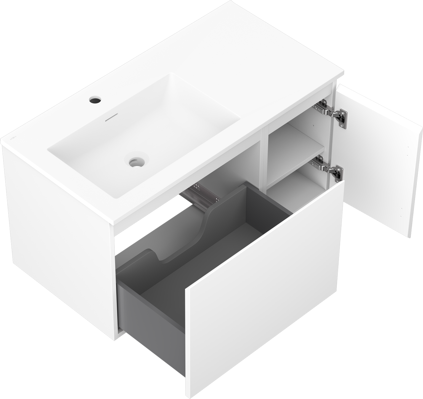 Mexen Orio szafka łazienkowa 90 cm z umywalką Otis lewą, 1S, 1D, biała mat - 91A13-09047-3-BBFF01-W18L01