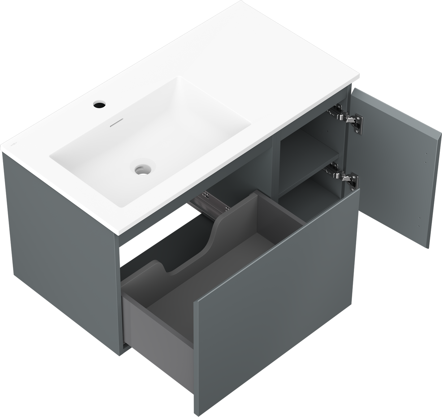 Mexen Orio szafka łazienkowa 90 cm z umywalką Otis lewą, 1S, 1D, grafit mat/biała mat - 91A13-09047-3-BBFF66-W18L01