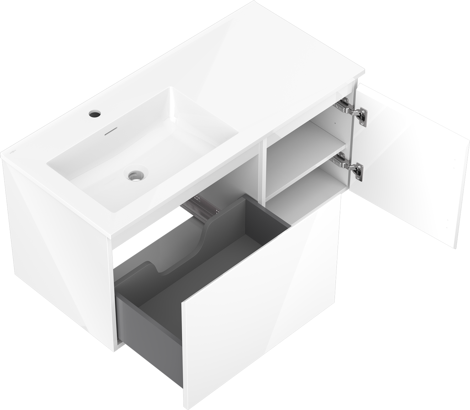 Mexen Orio szafka łazienkowa 100 cm z umywalką Otis lewą, 1S, 1D, biała połysk - 91A13-10047-3-BBFF00-W18L00