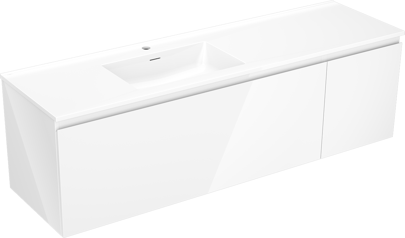 Mexen Orio szafka łazienkowa 160 cm z umywalką Otis lewą, 1S, 1D, biała połysk - 91A13-16047-3-BBFF00-W18L00