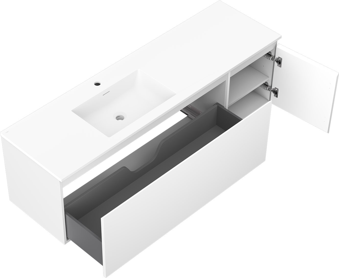 Mexen Orio szafka łazienkowa 160 cm z umywalką Otis lewą, 1S, 1D, biała mat - 91A13-16047-3-BBFF01-W18L01