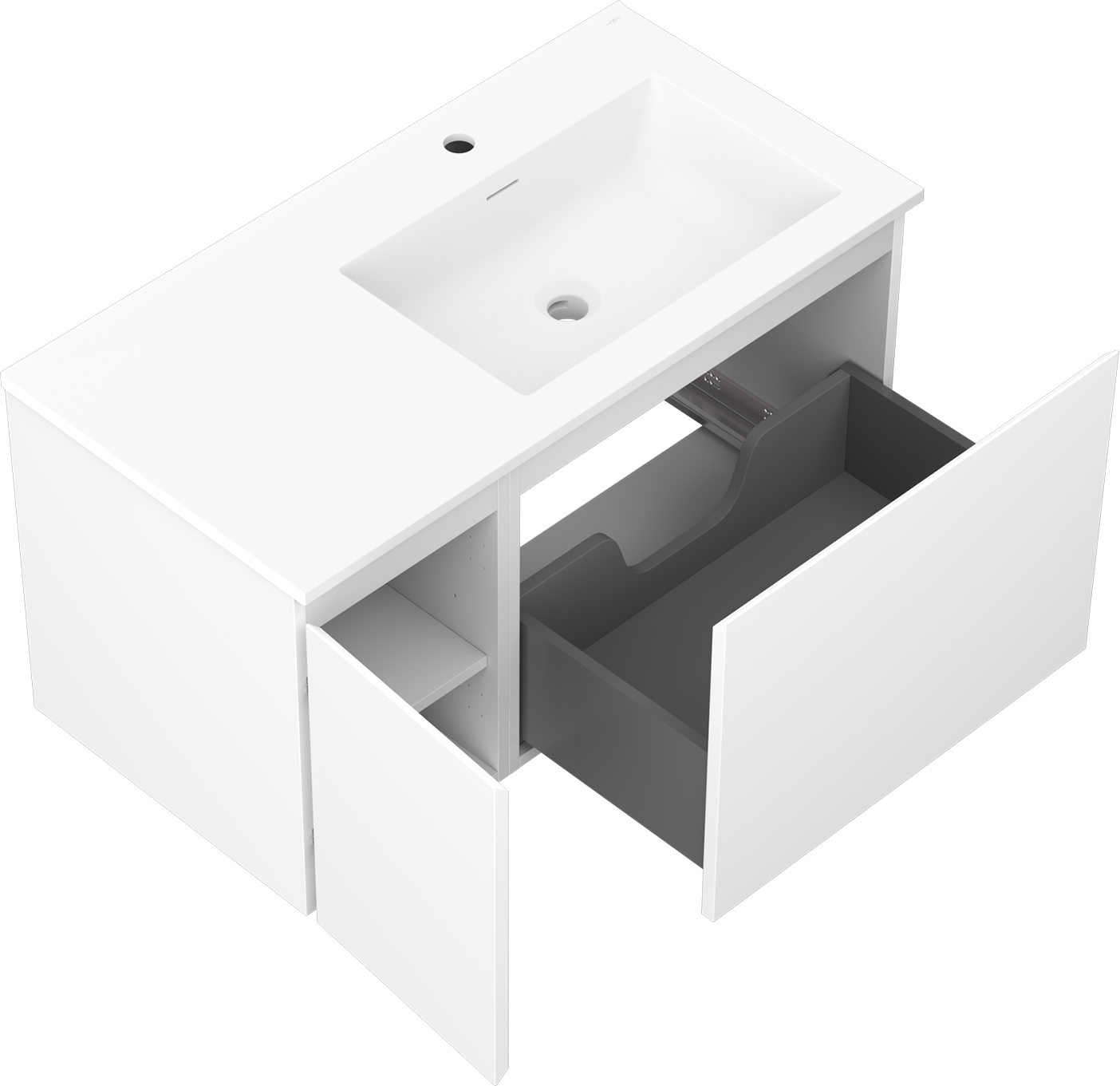 Mexen Orio szafka łazienkowa 90 cm z umywalką Otis prawą, 1S, 1D, biała mat - 91A13-09047-3-BBFF01-W18P01