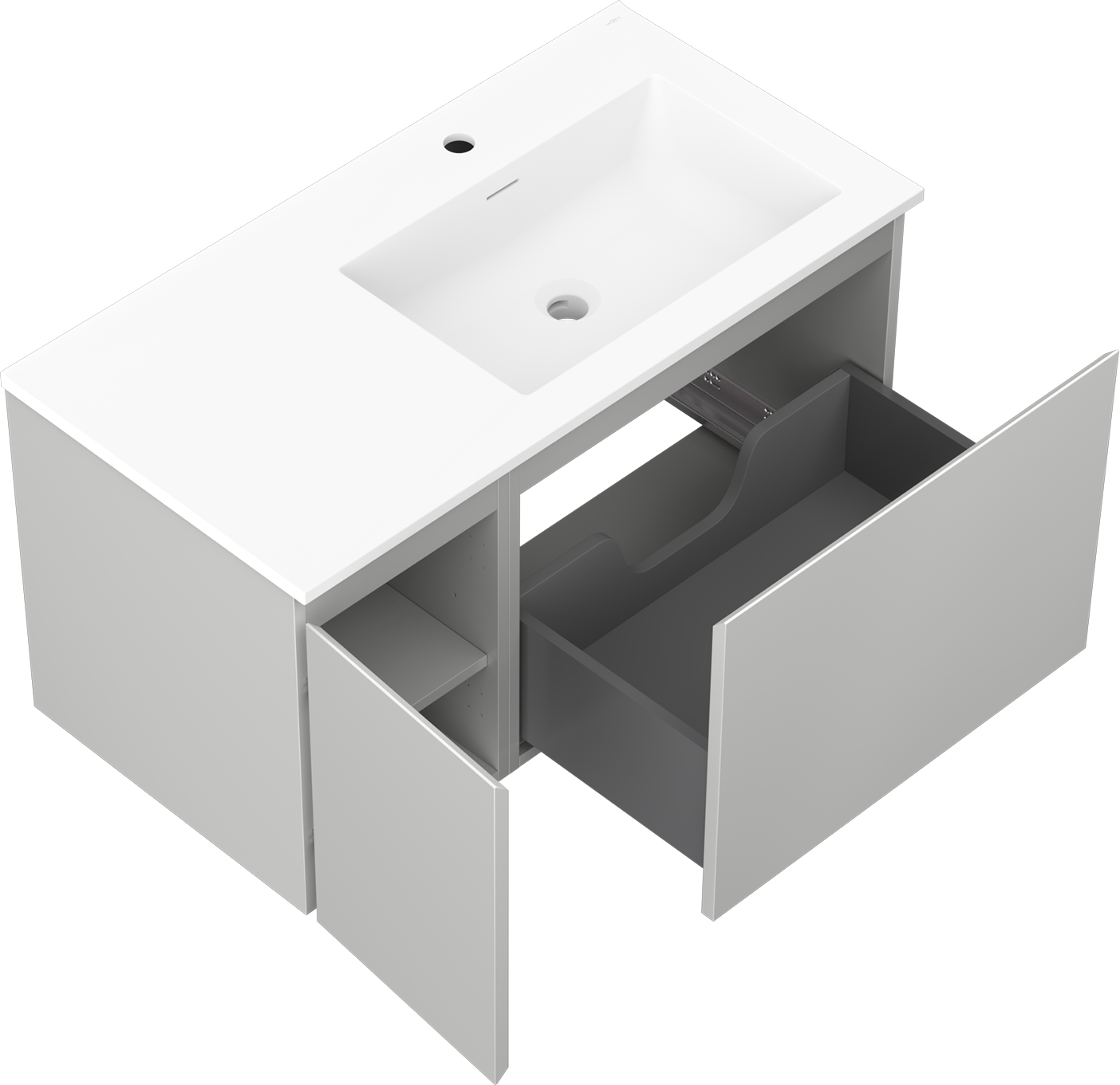 Mexen Orio szafka łazienkowa 90 cm z umywalką Otis prawą, 1S, 1D, szara mat/biała mat - 91A13-09047-3-BBFF62-W18P01