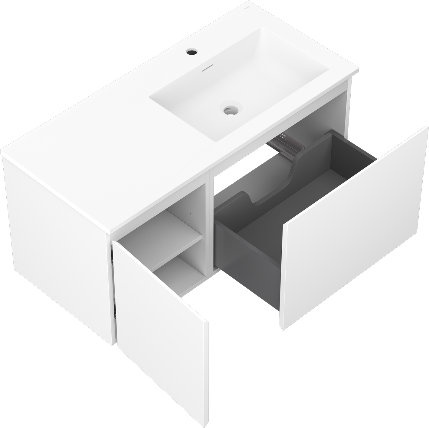 Mexen Orio szafka łazienkowa 100 cm z umywalką Otis prawą, 1S, 1D, biała mat - 91A13-10047-3-BBFF01-W18P01