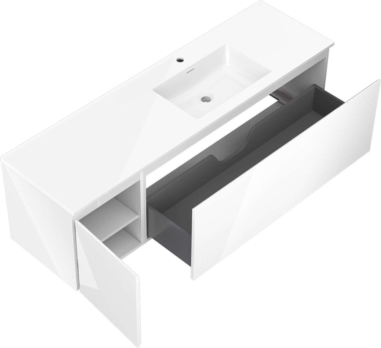 Mexen Orio szafka łazienkowa 160 cm z umywalką Otis prawą, 1S, 1D, biała połysk - 91A13-16047-3-BBFF00-W18P00