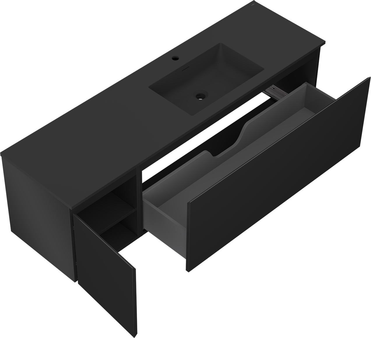 Mexen Orio szafka łazienkowa 160 cm z umywalką Otis prawą, 1S, 1D, czarna mat - 91A13-16047-3-BBFF71-W18P71