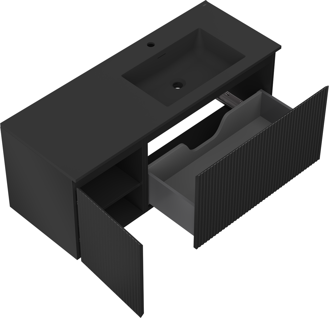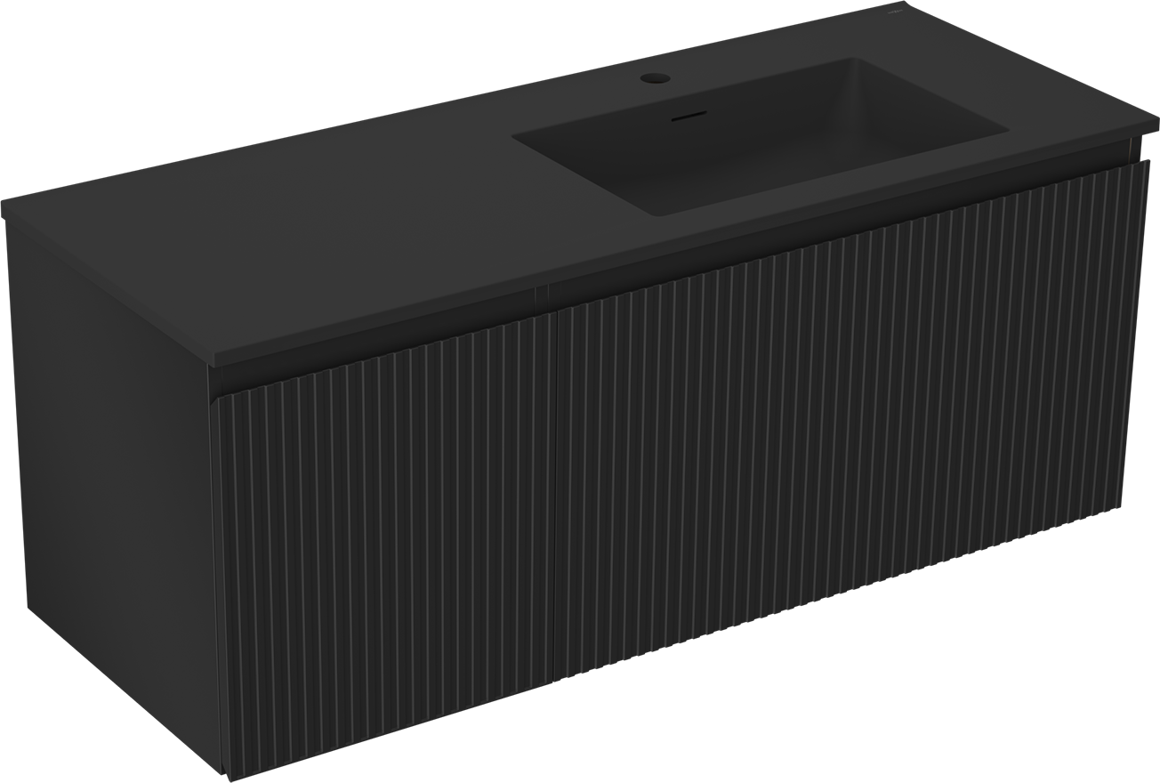 Mexen Rivel szafka łazienkowa 120 cm z umywalką Otis prawą, 1S, 1D, ryflowana, czarna mat - 91A23-12047-3-BBFF71-W18P71