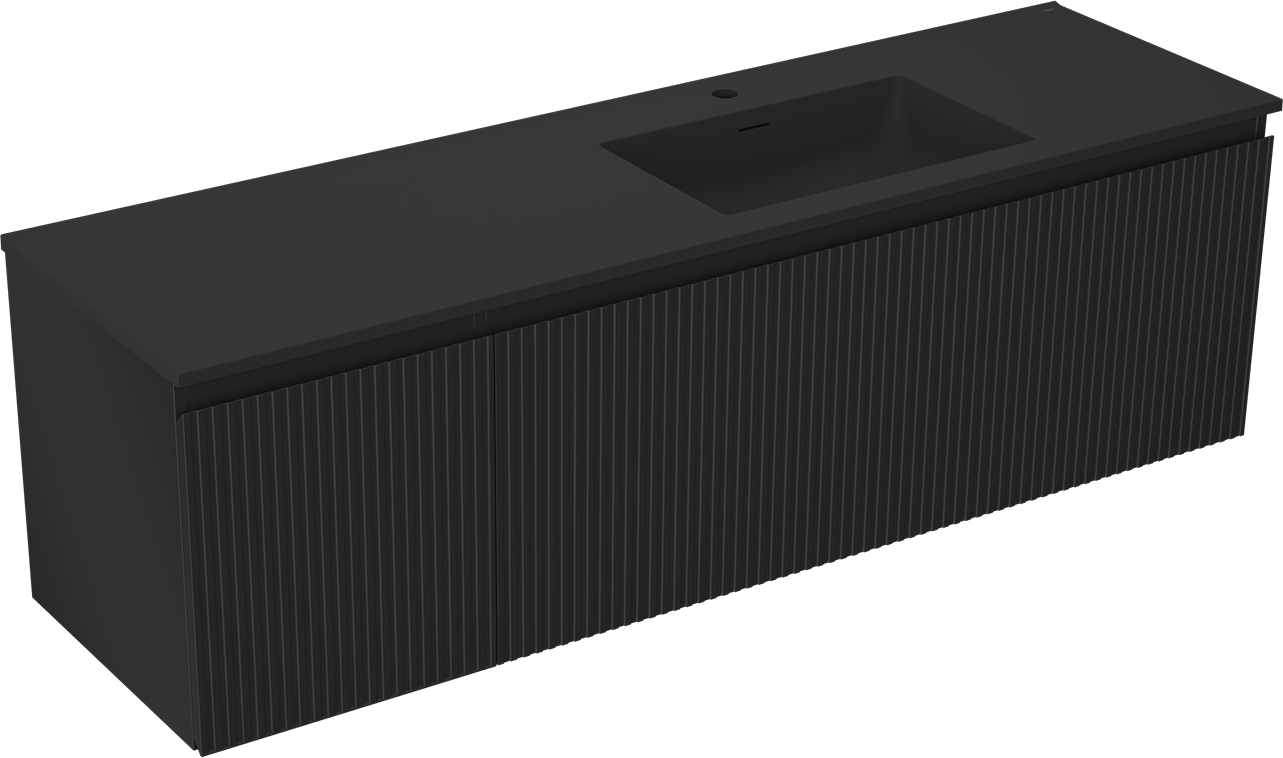 Mexen Rivel szafka łazienkowa 160 cm z umywalką Otis prawą, 1S, 1D, ryflowana, czarna mat - 91A23-16047-3-BBFF71-W18P71