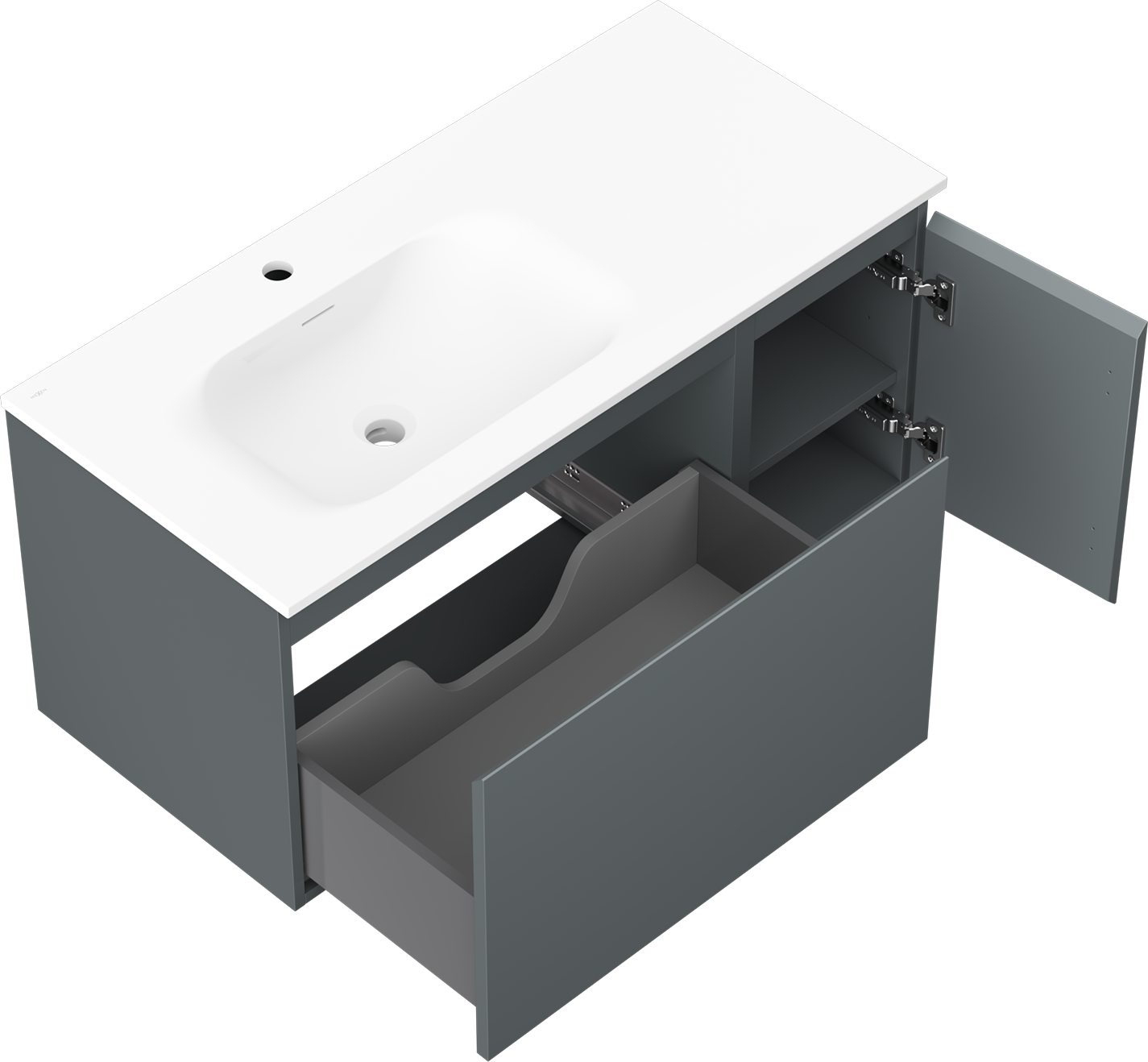 Mexen Orio szafka łazienkowa 90 cm z umywalką Vela lewą, 1S, 1D, grafit mat/biała mat - 91A13-09047-3-BBFF66-W23L01