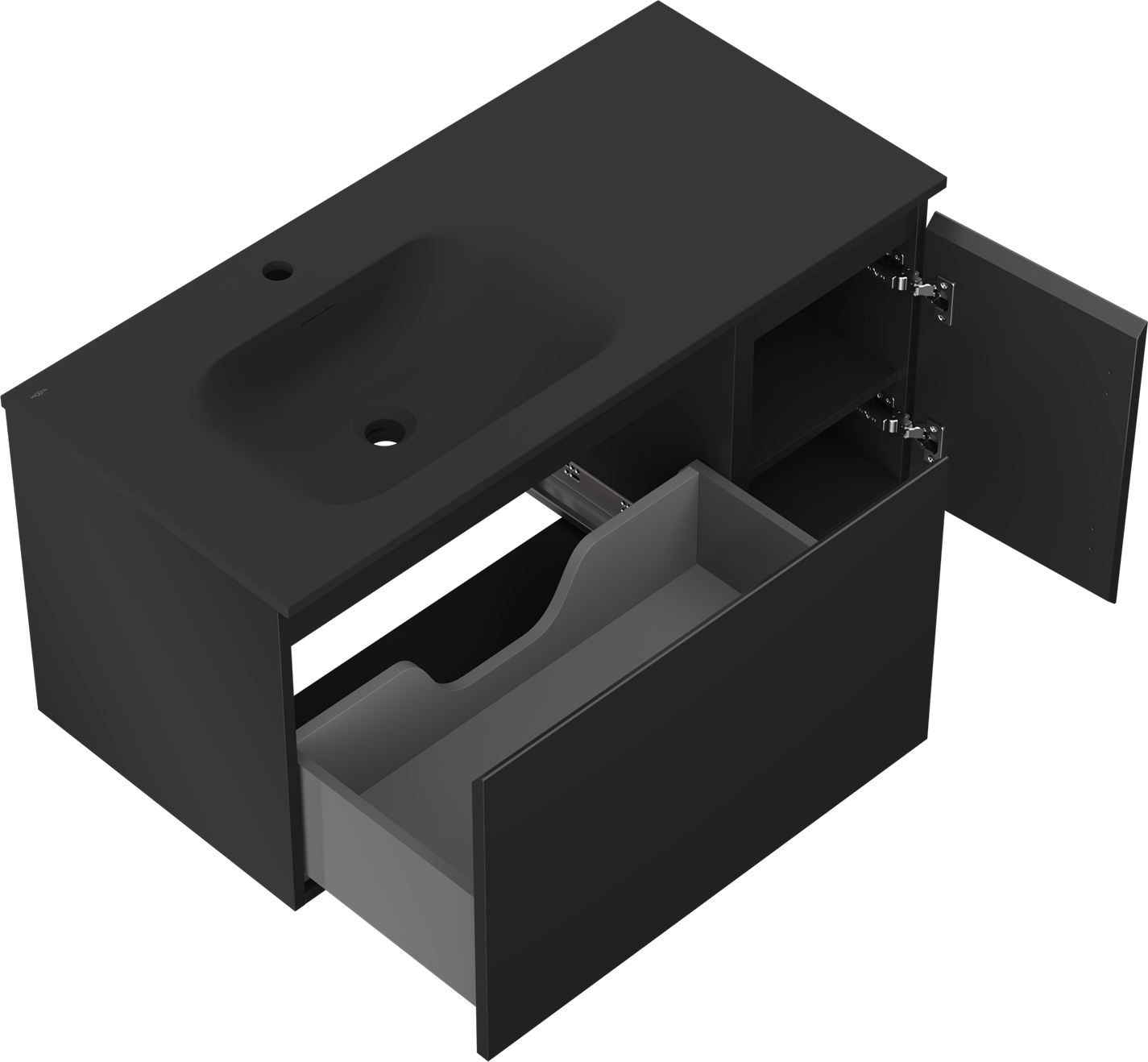 Mexen Orio szafka łazienkowa 90 cm z umywalką Vela lewą, 1S, 1D, czarna mat - 91A13-09047-3-BBFF71-W23L71