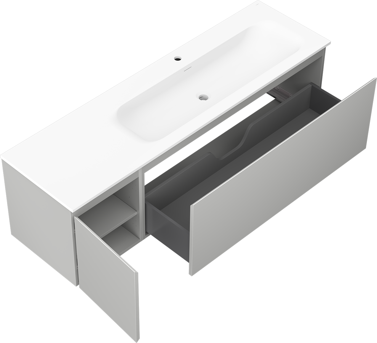 Mexen Orio szafka łazienkowa 160 cm z umywalką Vela prawą, 1S, 1D, szara mat/biała mat - 91A13-16047-3-BBFF62-W23P01