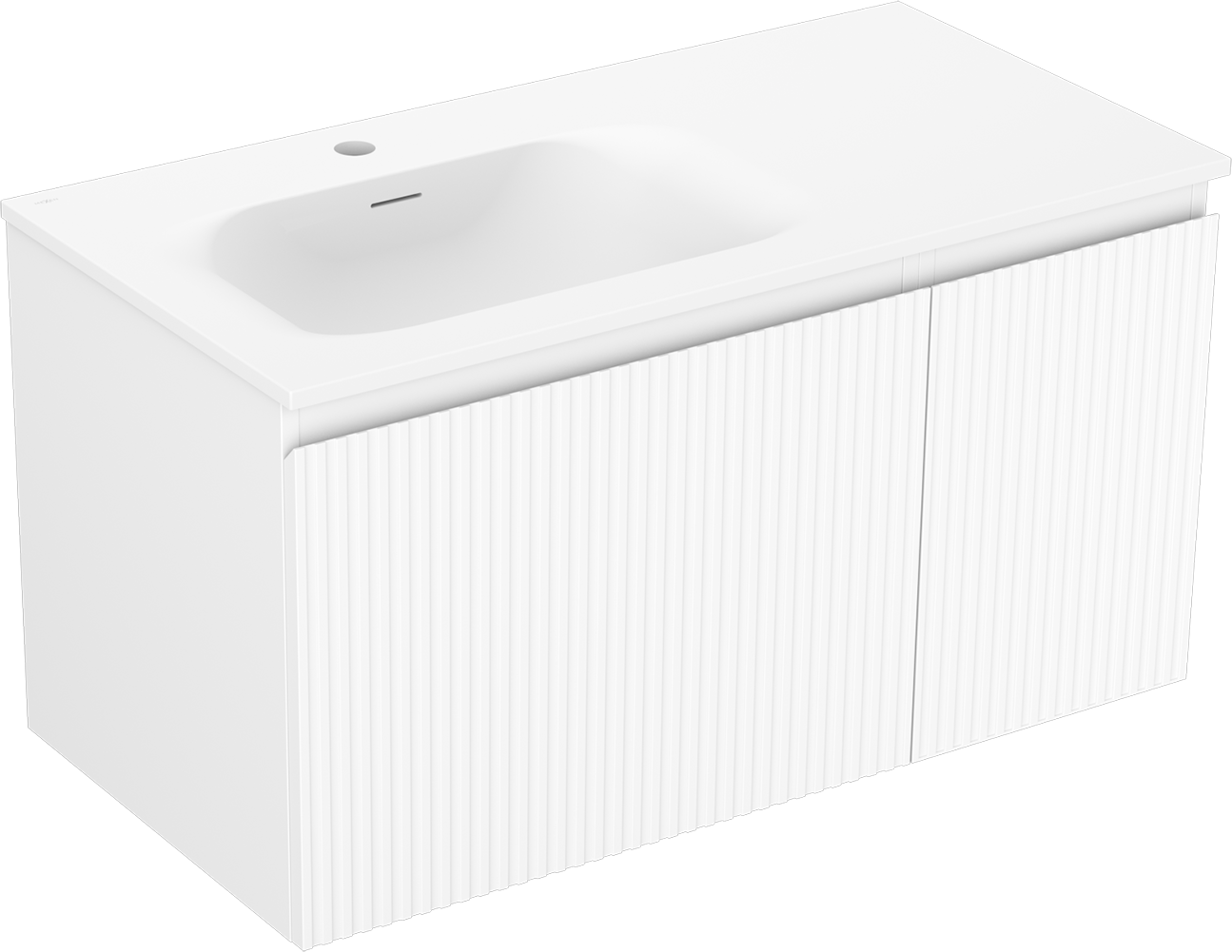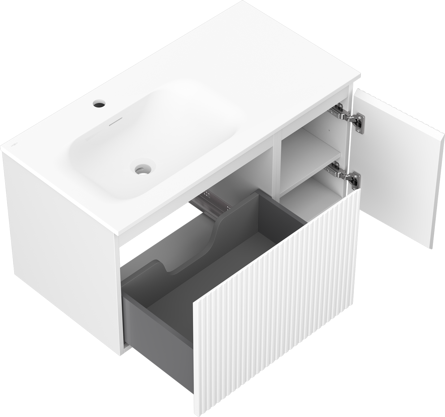 Mexen Rivel szafka łazienkowa 90 cm z umywalką Vela lewą, 1S, 1D, ryflowana, biała mat - 91A23-09047-3-BBFF01-W23L01