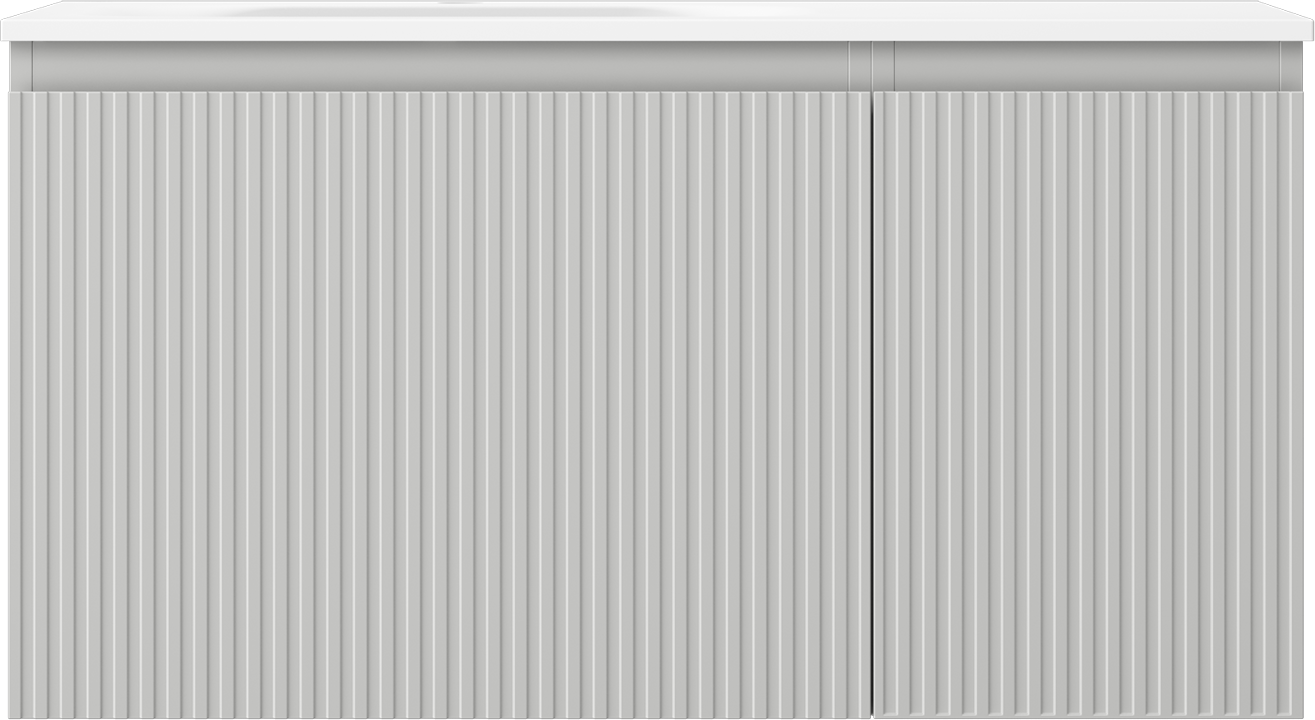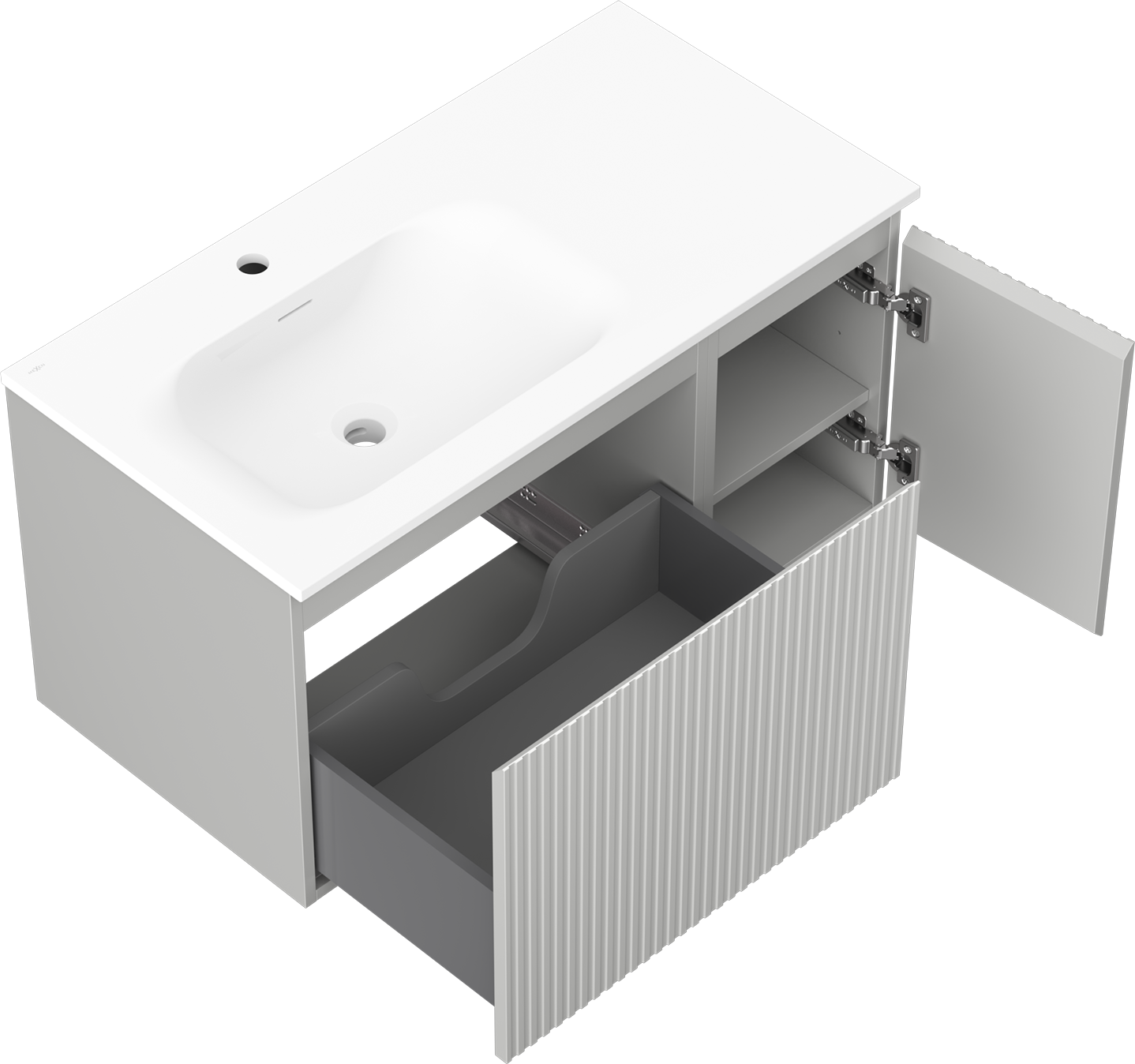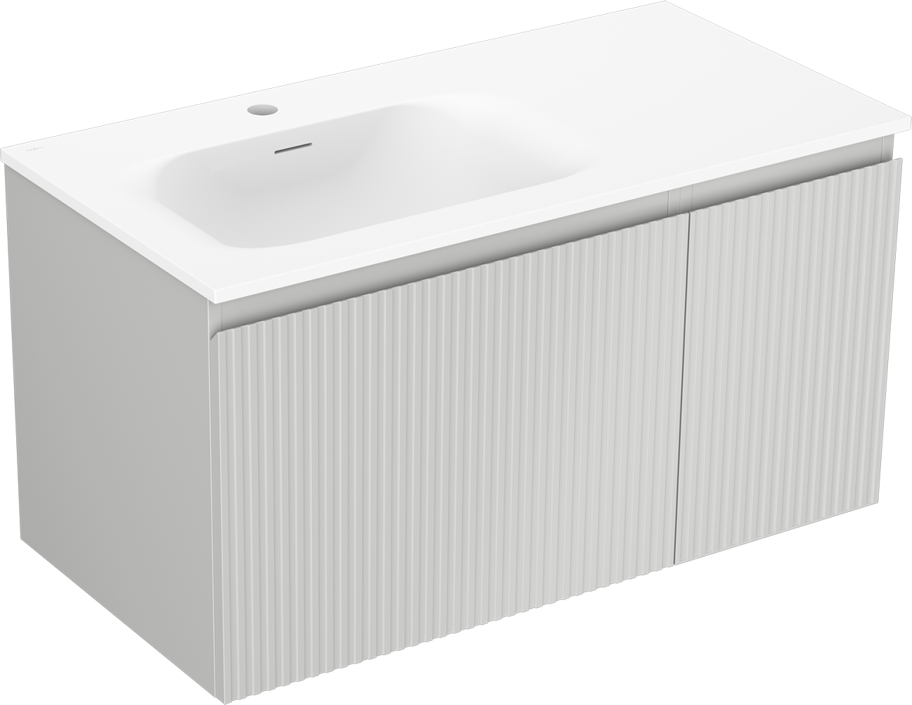 Mexen Rivel szafka łazienkowa 90 cm z umywalką Vela lewą, 1S, 1D, ryflowana, szara mat/biała mat - 91A23-09047-3-BBFF62-W23L01
