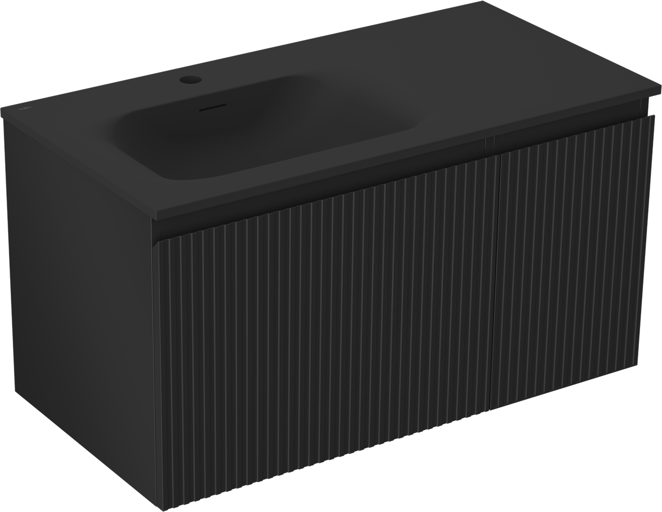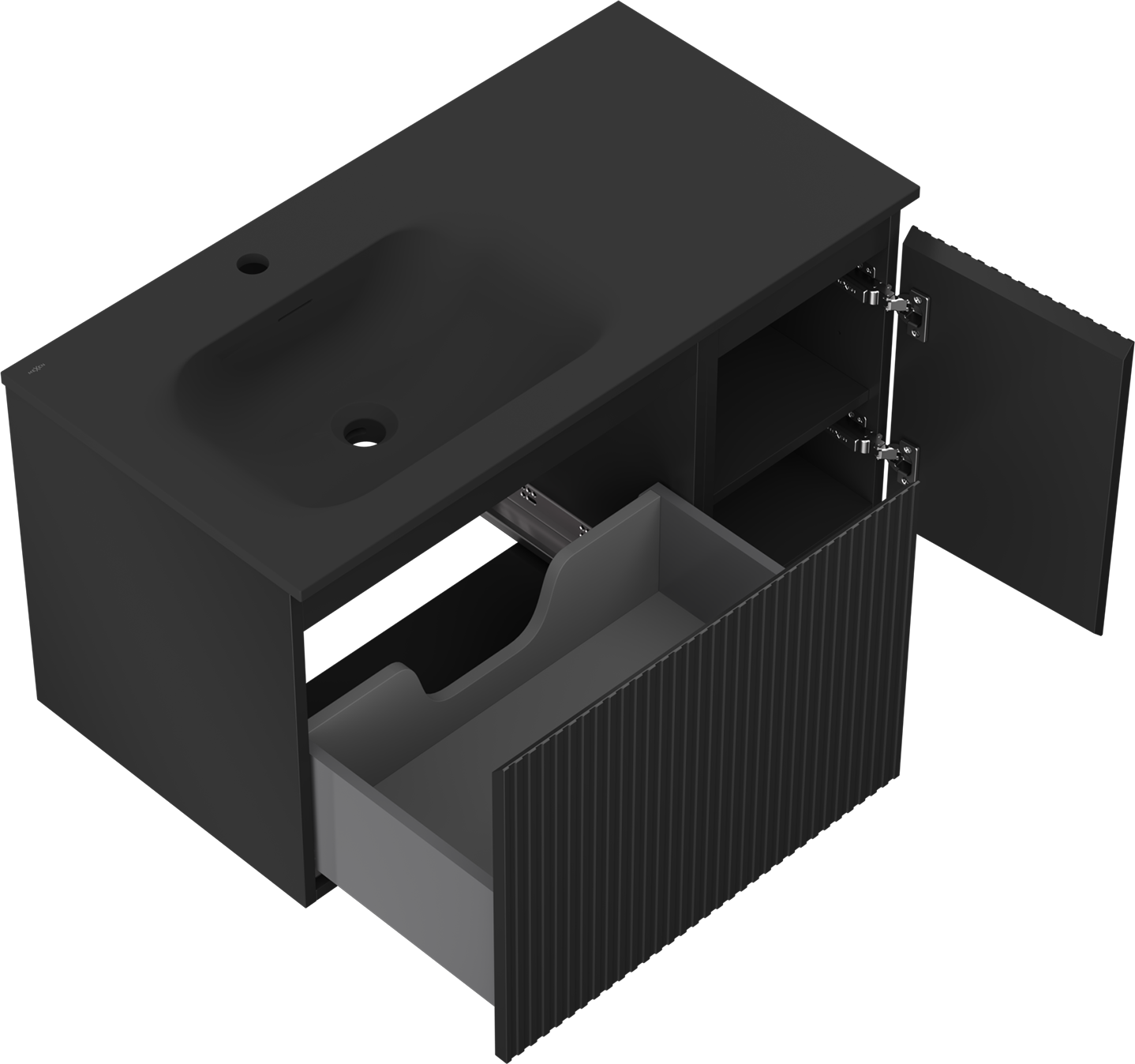 Mexen Rivel szafka łazienkowa 90 cm z umywalką Vela lewą, 1S, 1D, ryflowana, czarna mat - 91A23-09047-3-BBFF71-W23L71