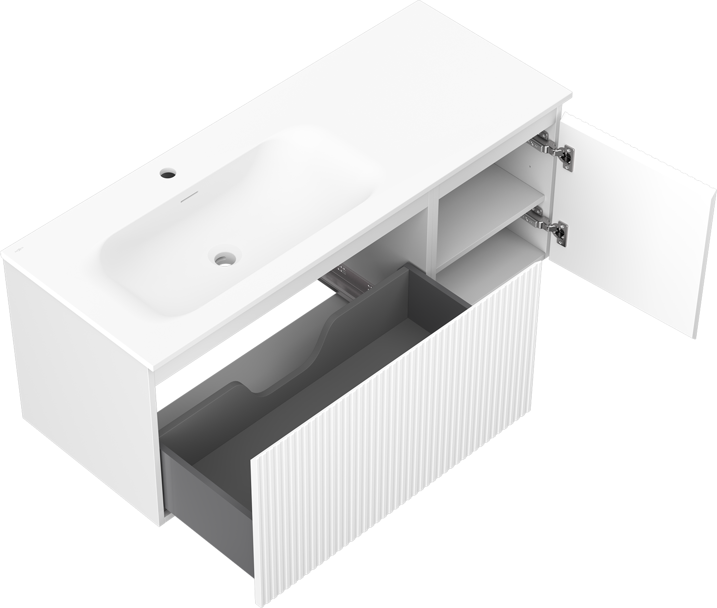 Mexen Rivel szafka łazienkowa 120 cm z umywalką Vela lewą, 1S, 1D, ryflowana, biała mat - 91A23-12047-3-BBFF01-W23L01