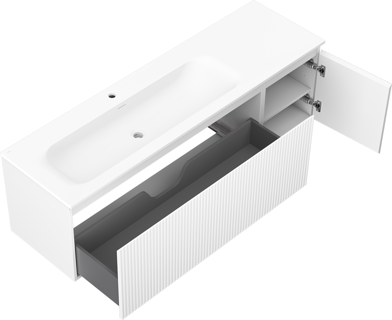 Mexen Rivel szafka łazienkowa 160 cm z umywalką Vela lewą, 1S, 1D, ryflowana, biała mat - 91A23-16047-3-BBFF01-W23L01