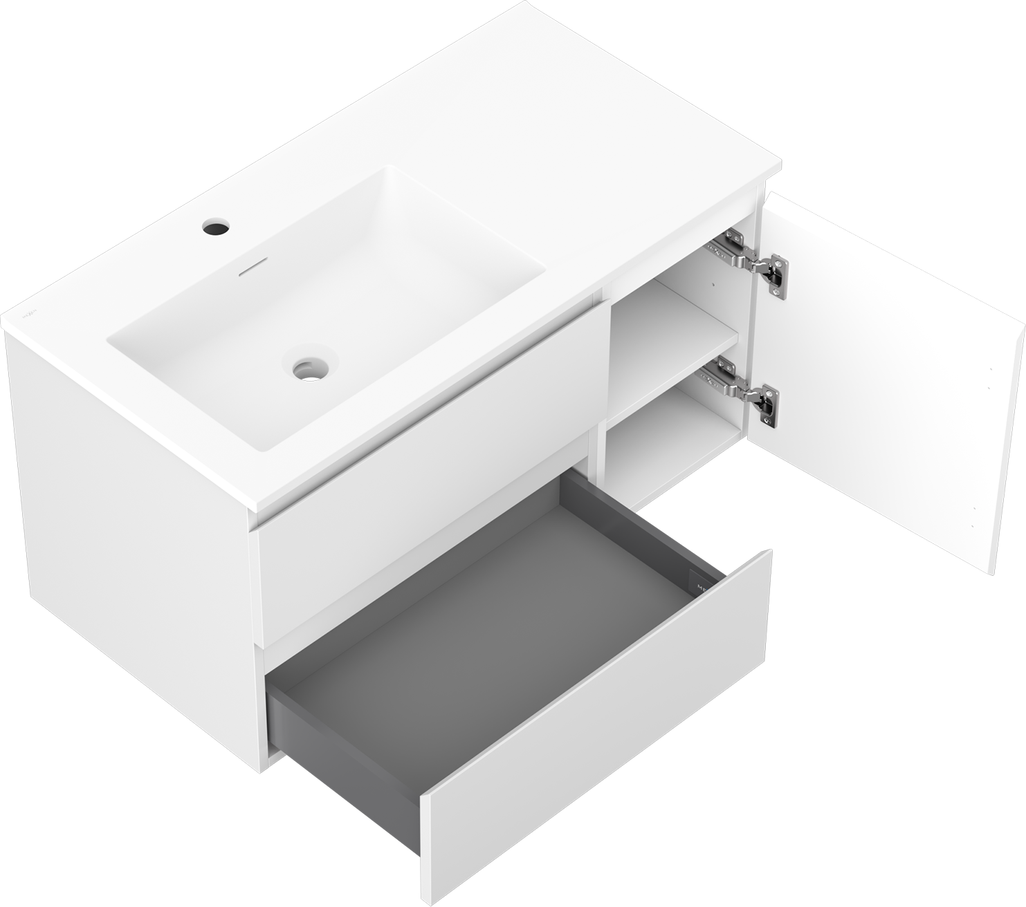 Mexen Orio szafka łazienkowa 90 cm z umywalką Otis lewą, 2S, 1D, biała mat - 91A13-09047-3-BBFFF01-W18L01