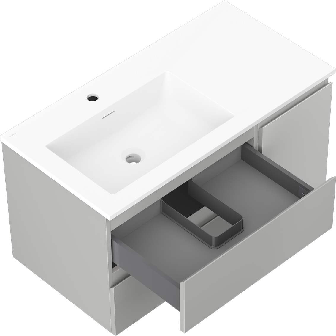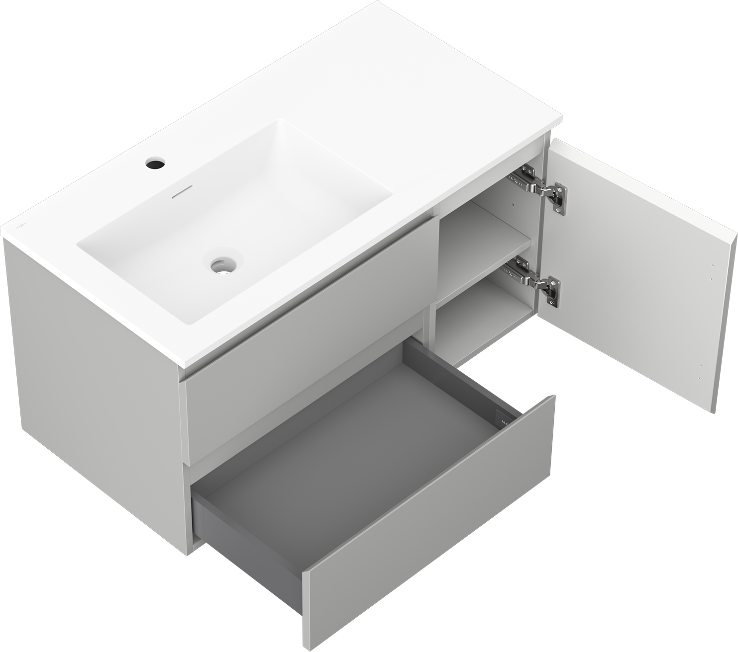 Mexen Orio szafka łazienkowa 90 cm z umywalką Otis lewą, 2S, 1D, szara mat/biała mat - 91A13-09047-3-BBFFF62-W18L01