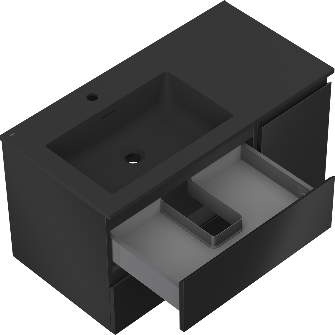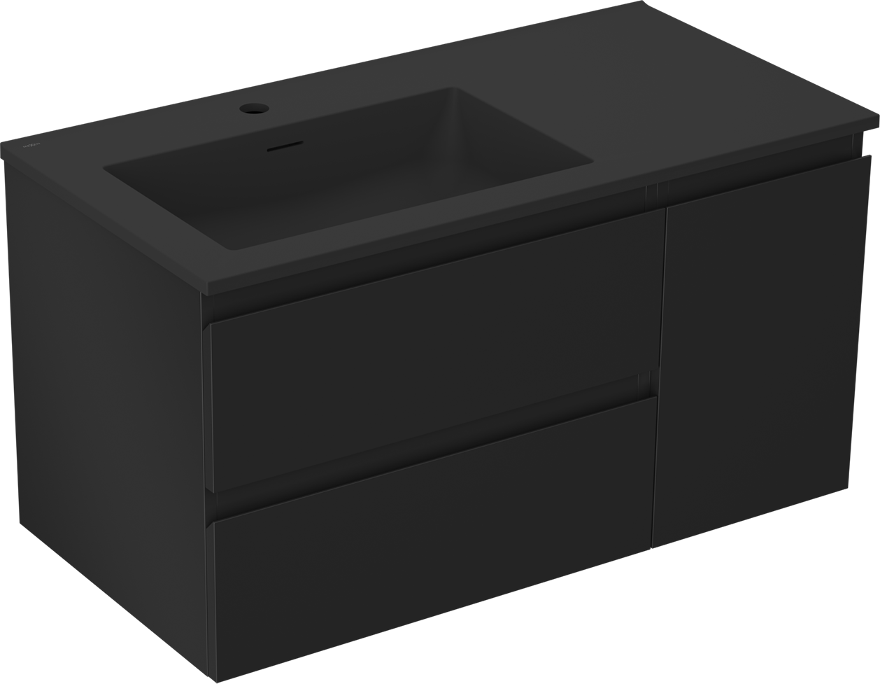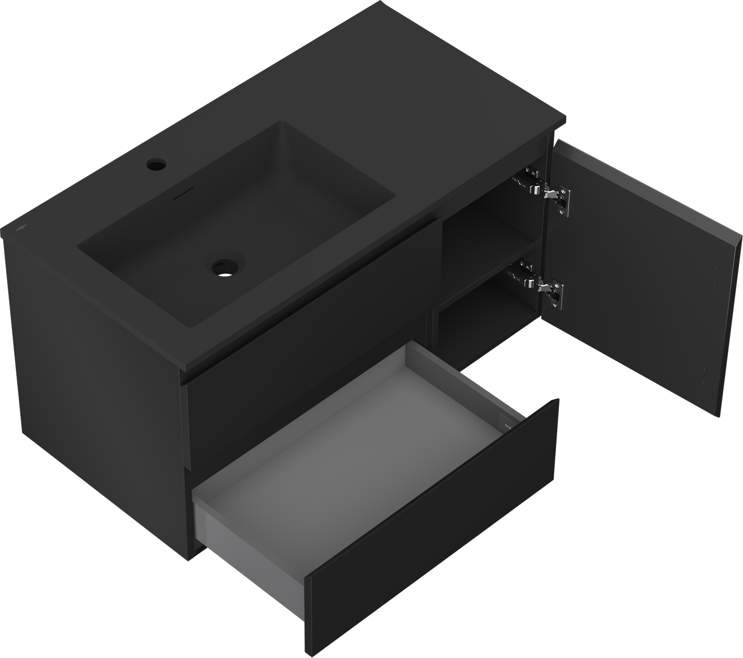 Mexen Orio szafka łazienkowa 90 cm z umywalką Otis lewą, 2S, 1D, czarna mat - 91A13-09047-3-BBFFF71-W18L71