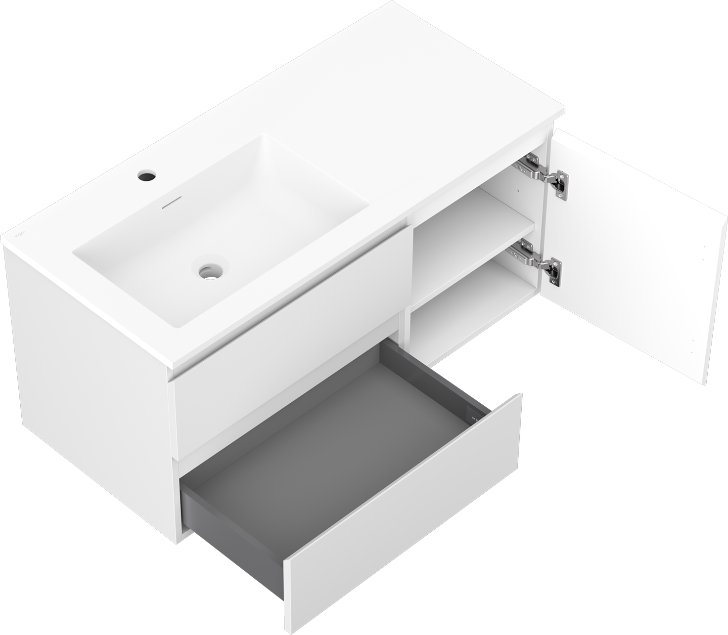 Mexen Orio szafka łazienkowa 100 cm z umywalką Otis lewą, 2S, 1D, biała mat - 91A13-10047-3-BBFFF01-W18L01
