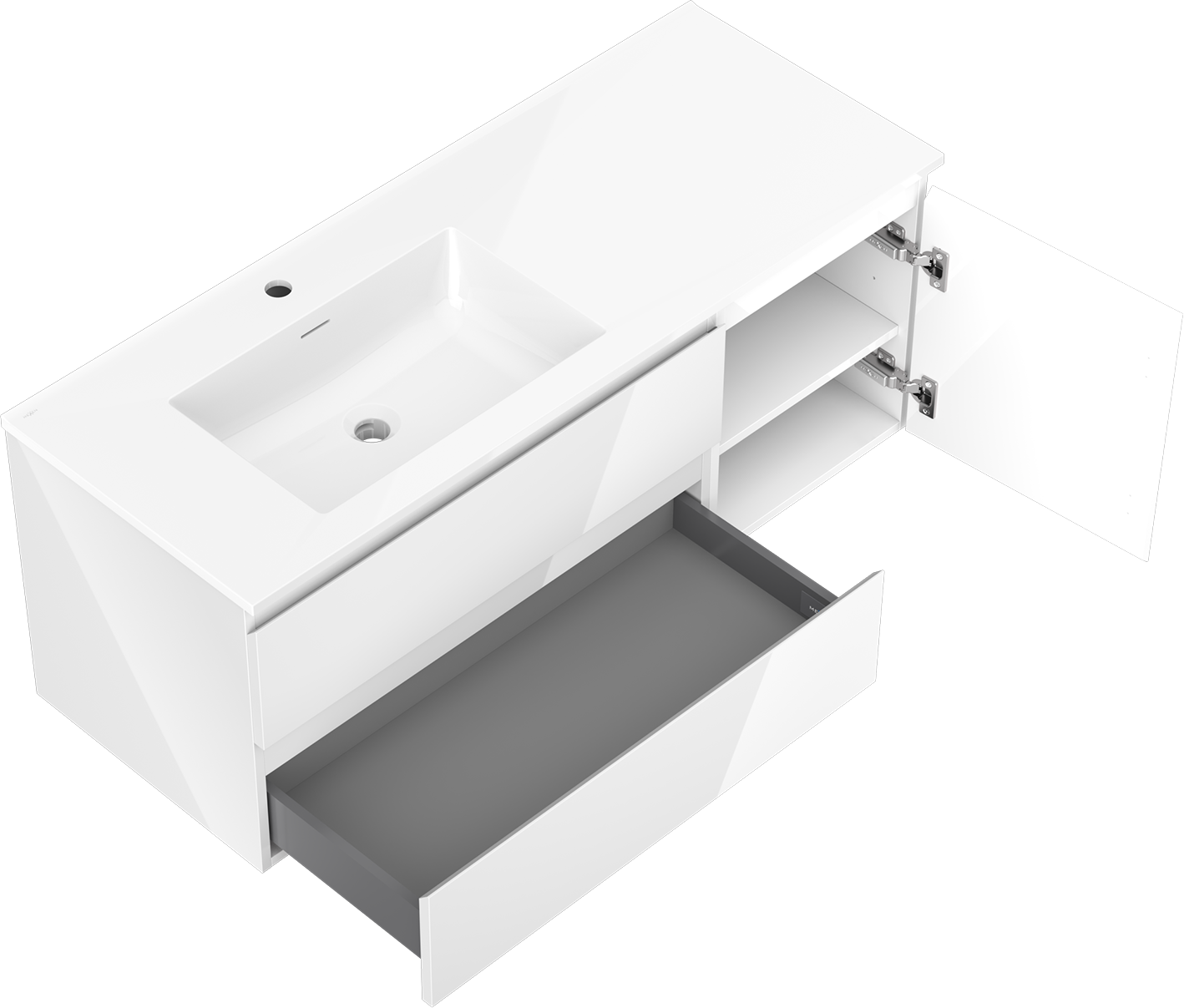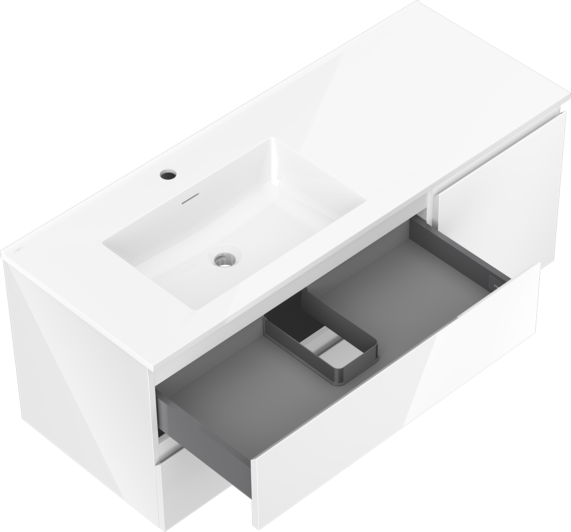 Mexen Orio szafka łazienkowa 120 cm z umywalką Otis lewą, 2S, 1D, biała połysk - 91A13-12047-3-BBFFF00-W18L00