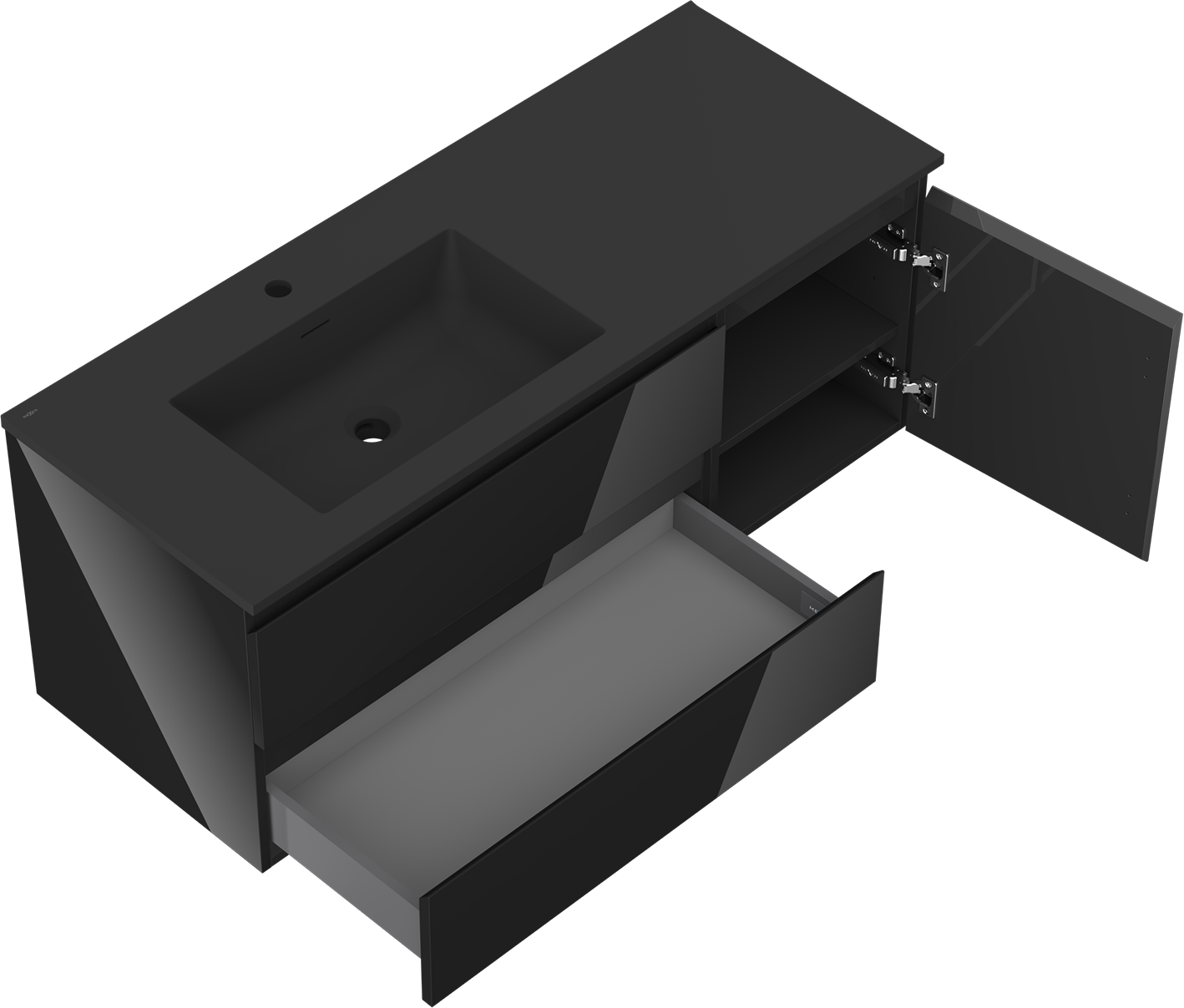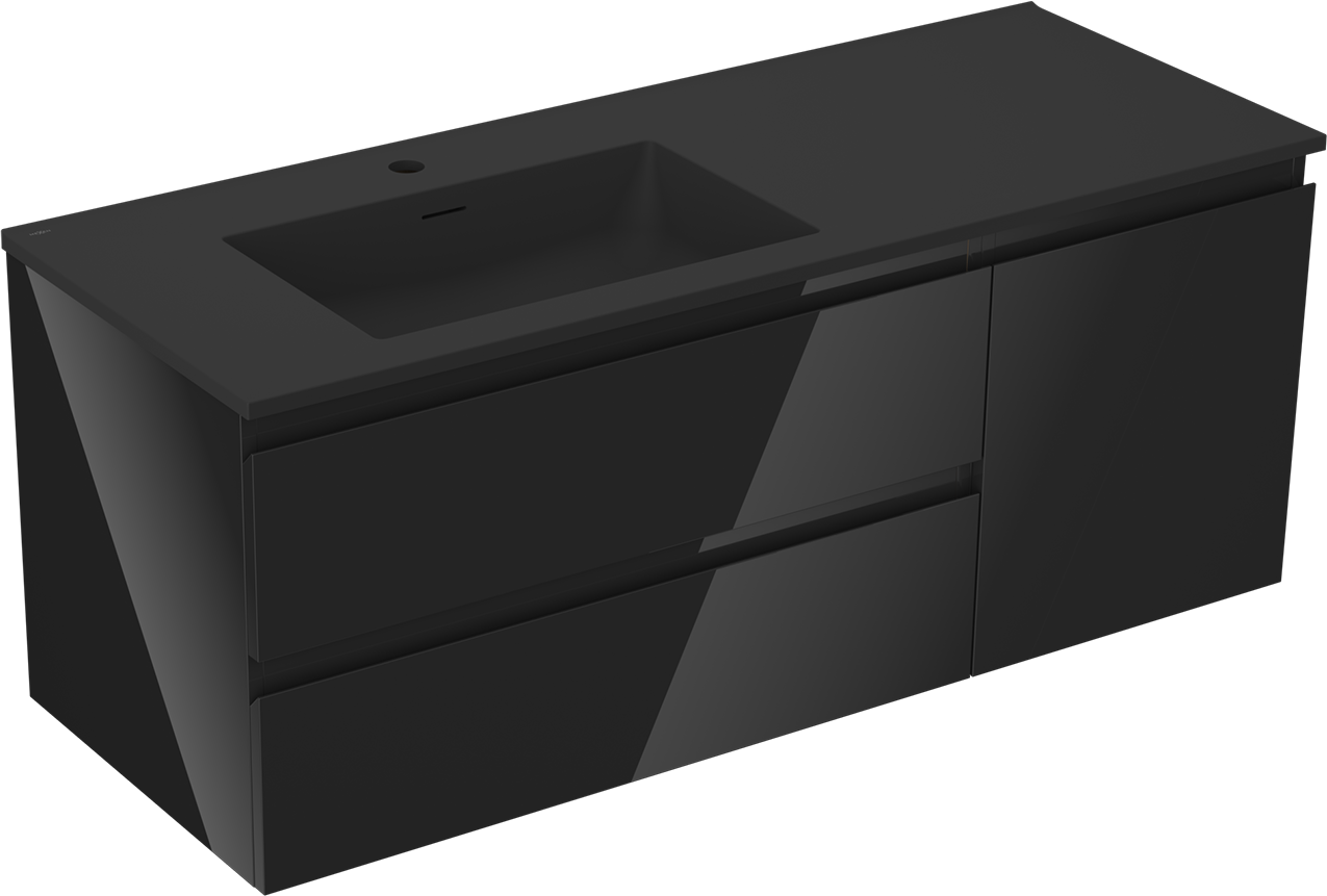 Mexen Orio szafka łazienkowa 120 cm z umywalką Otis lewą, 2S, 1D, czarna połysk/czarna mat - 91A13-12047-3-BBFFF70-W18L71