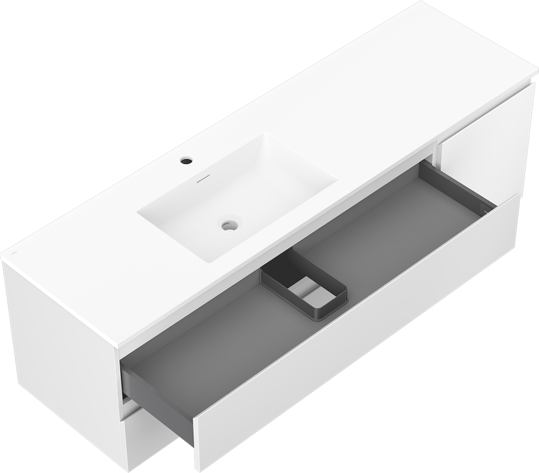 Mexen Orio szafka łazienkowa 160 cm z umywalką Otis lewą, 2S, 1D, biała mat - 91A13-16047-3-BBFFF01-W18L01