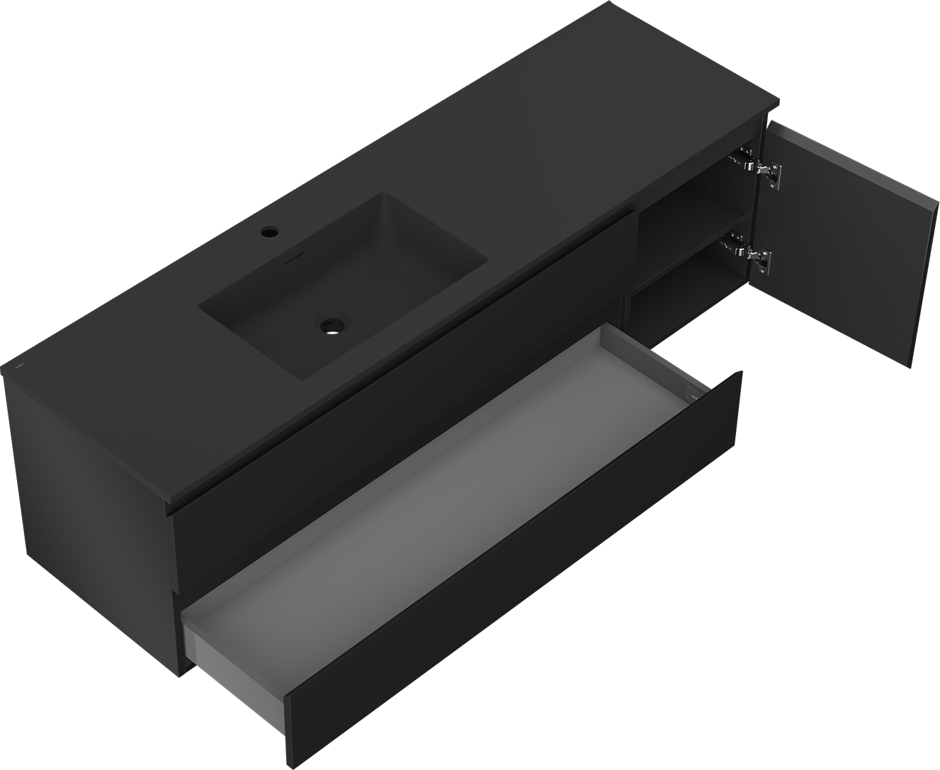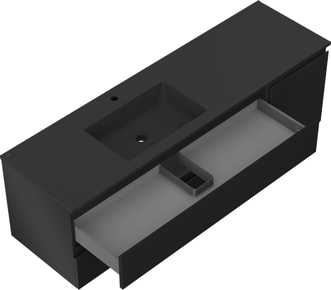 Mexen Orio szafka łazienkowa 160 cm z umywalką Otis lewą, 2S, 1D, czarna mat - 91A13-16047-3-BBFFF71-W18L71