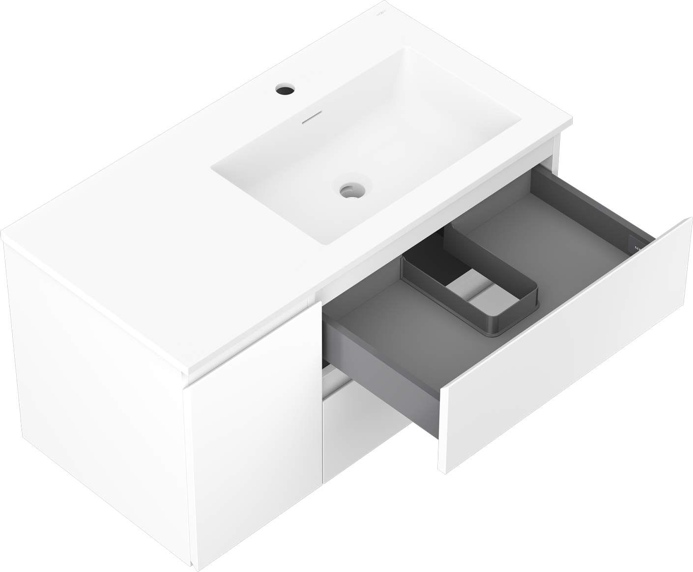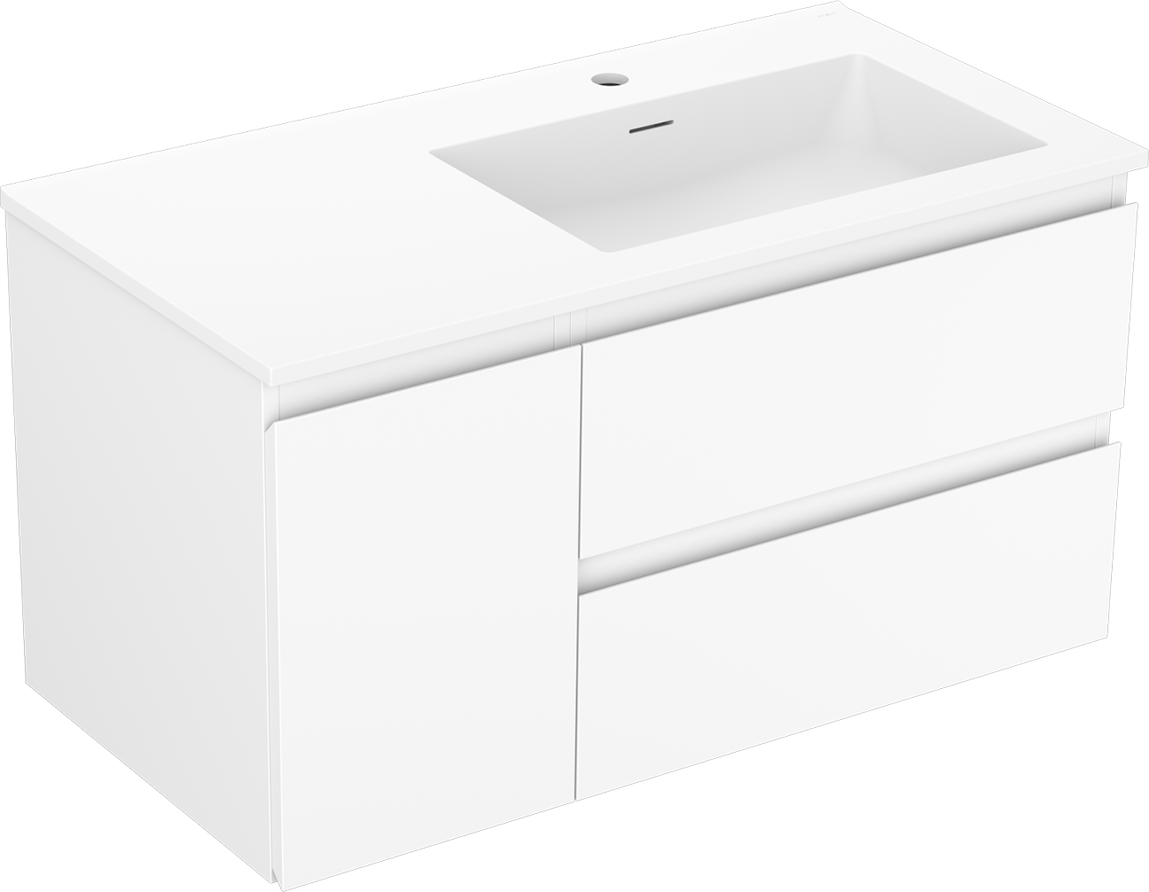 Mexen Orio szafka łazienkowa 90 cm z umywalką Otis prawą, 2S, 1D, biała mat - 91A13-09047-3-BBFFF01-W18P01