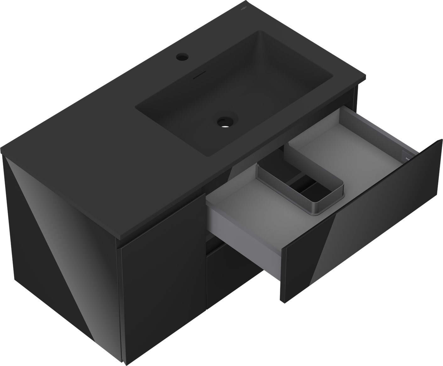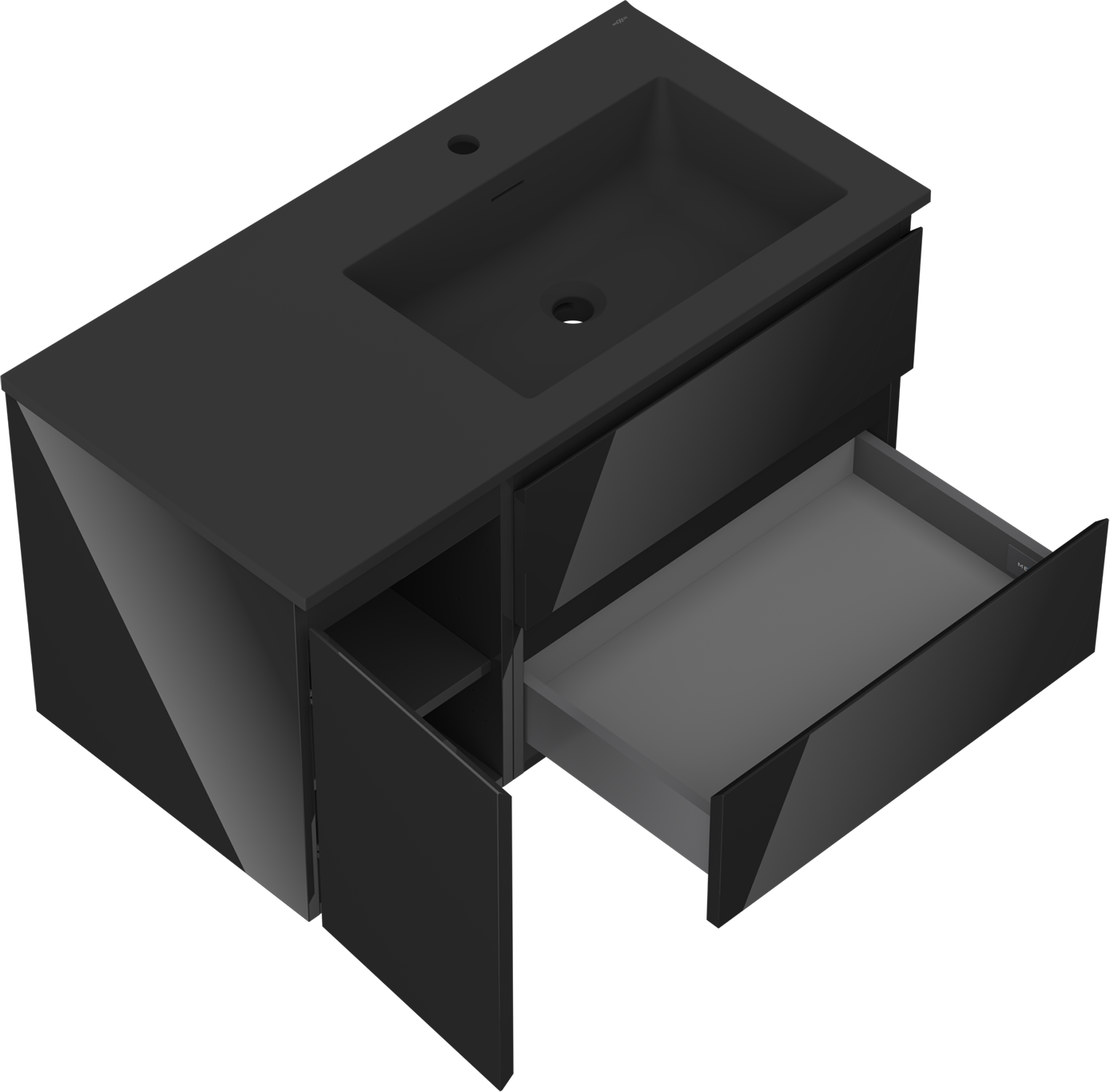 Mexen Orio szafka łazienkowa 90 cm z umywalką Otis prawą, 2S, 1D, czarna połysk/czarna mat - 91A13-09047-3-BBFFF70-W18P71