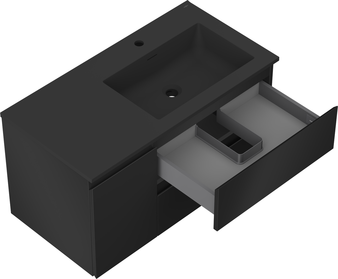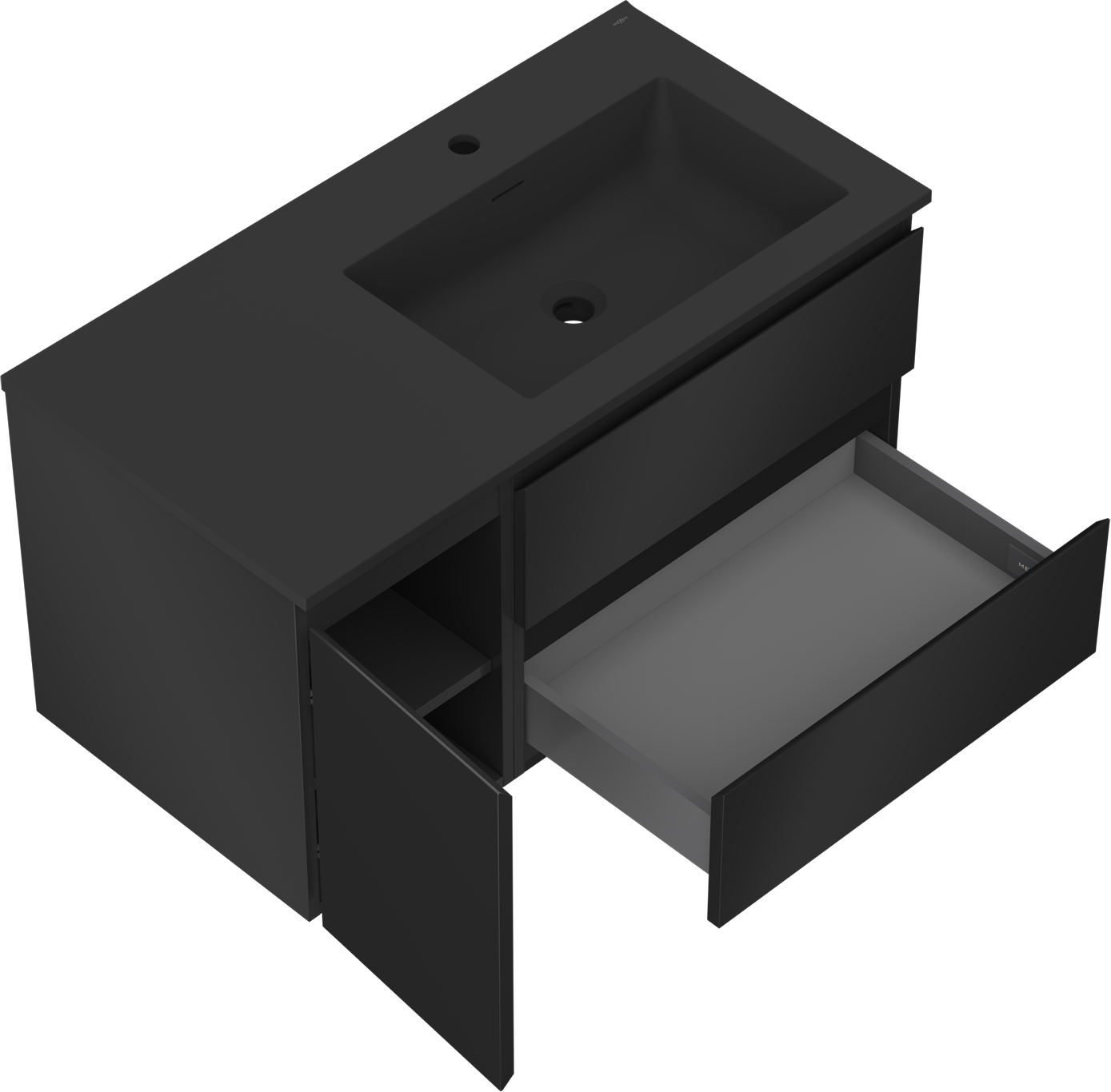 Mexen Orio szafka łazienkowa 90 cm z umywalką Otis prawą, 2S, 1D, czarna mat - 91A13-09047-3-BBFFF71-W18P71