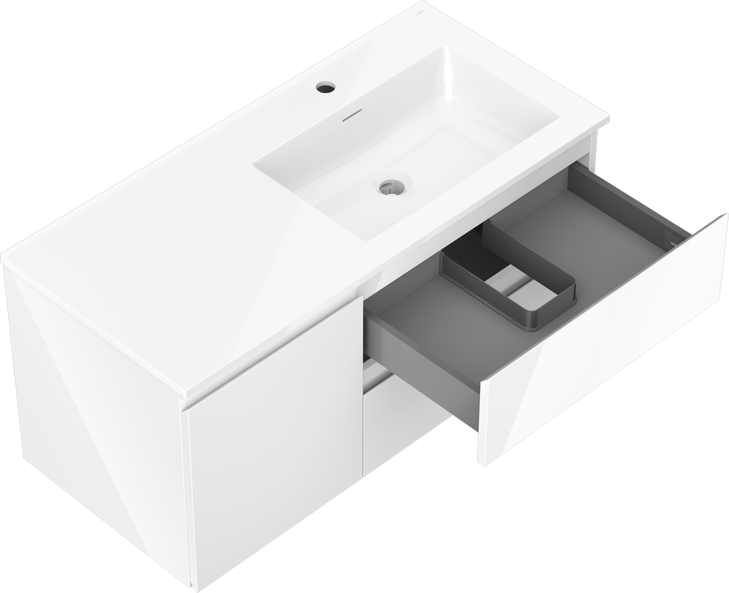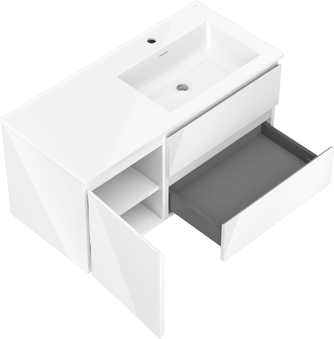 Mexen Orio szafka łazienkowa 100 cm z umywalką Otis prawą, 2S, 1D, biała połysk - 91A13-10047-3-BBFFF00-W18P00