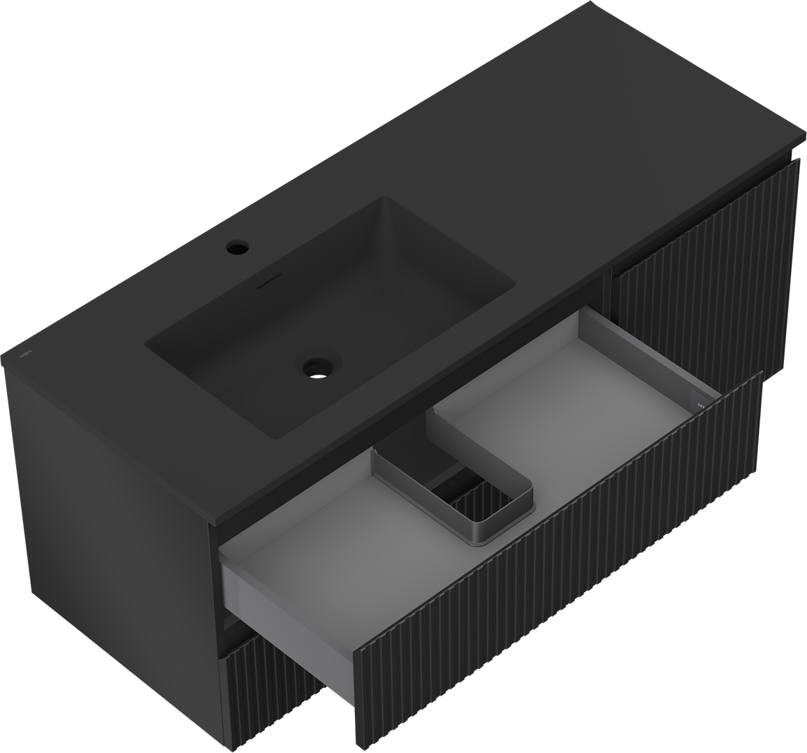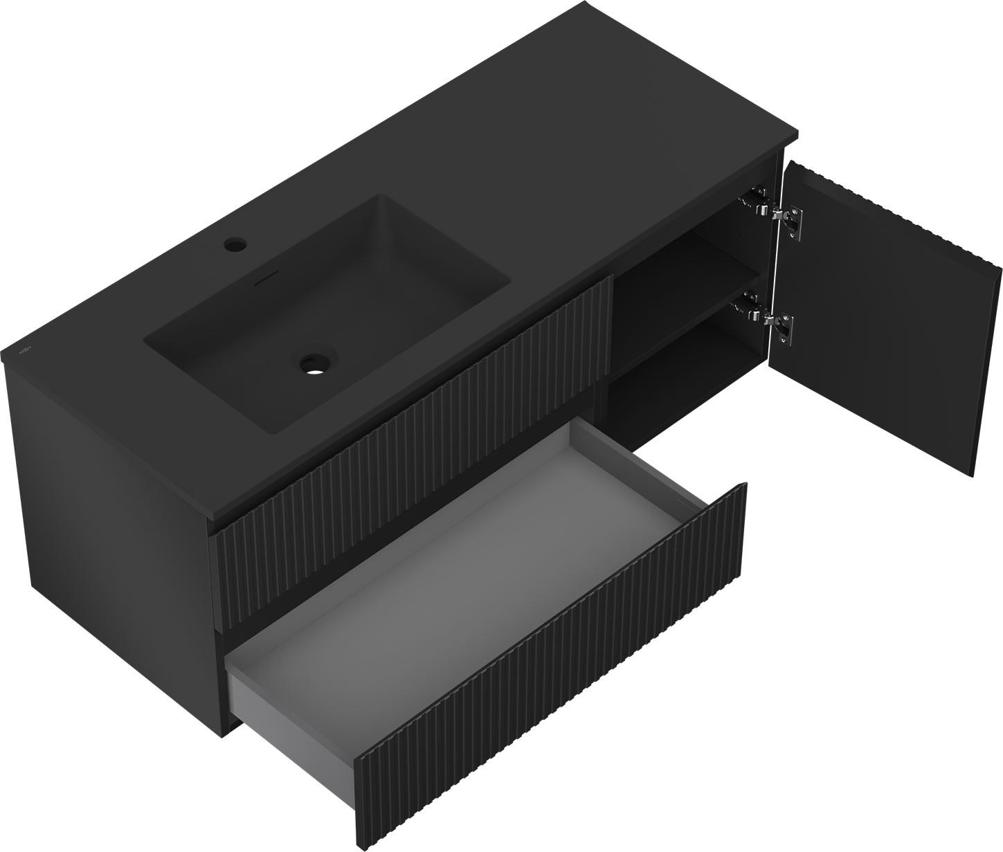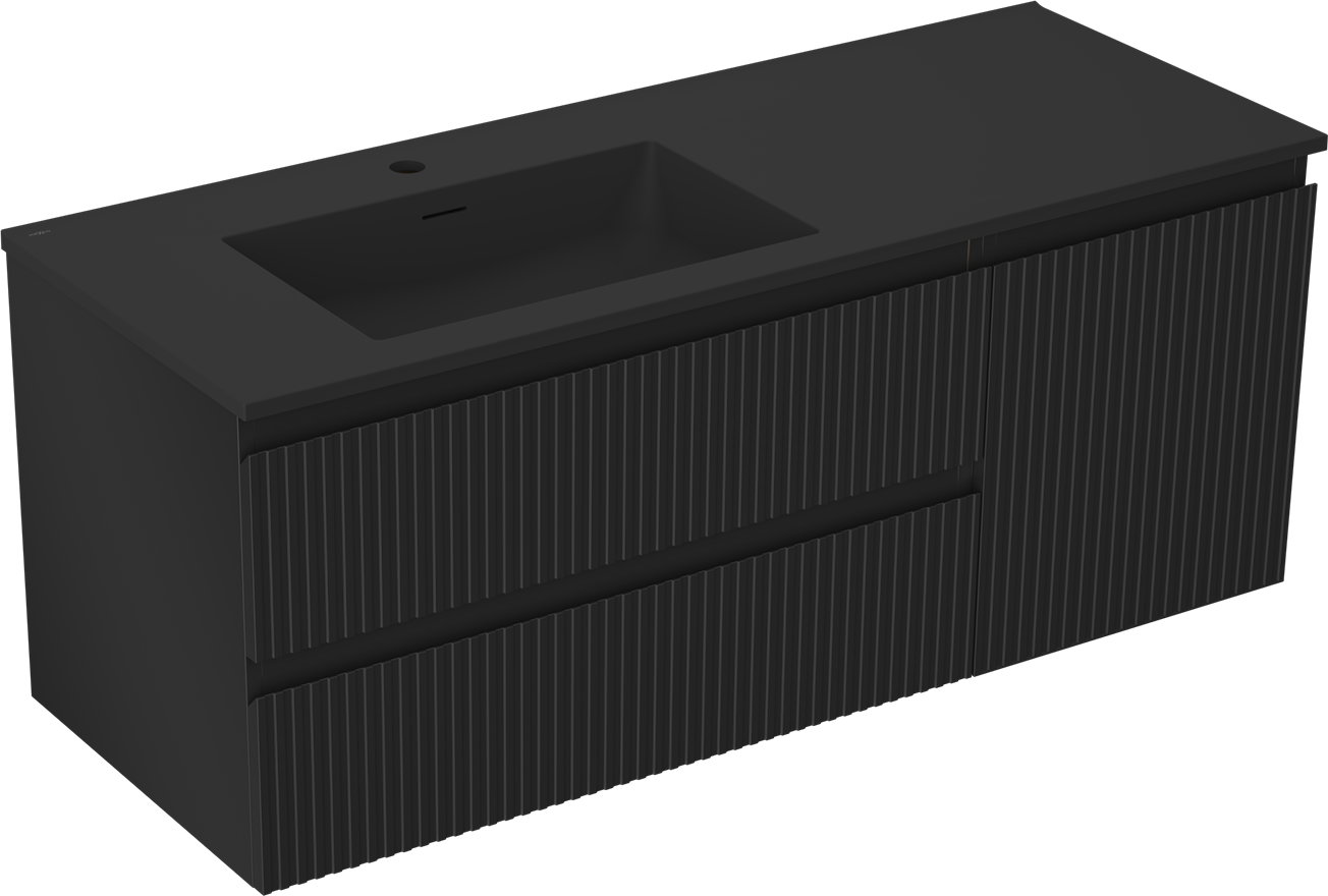 Mexen Rivel szafka łazienkowa 120 cm z umywalką Otis lewą, 2S, 1D, ryflowana, czarna mat - 91A23-12047-3-BBFFF71-W18L71