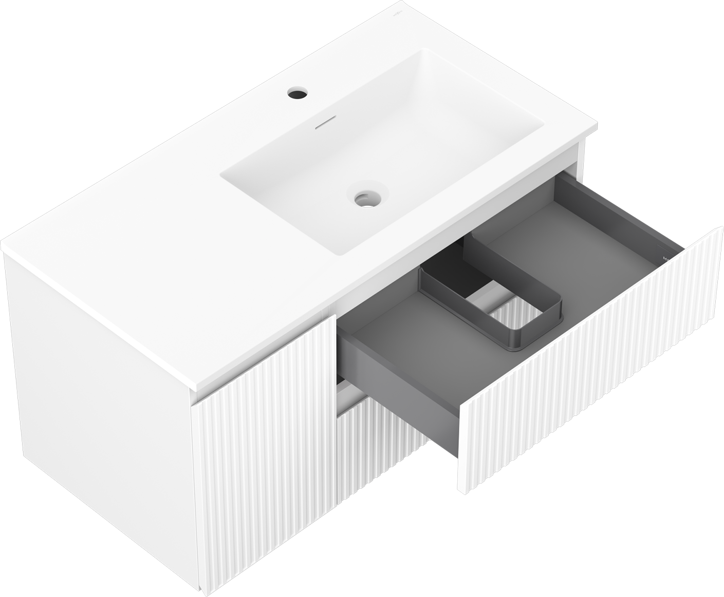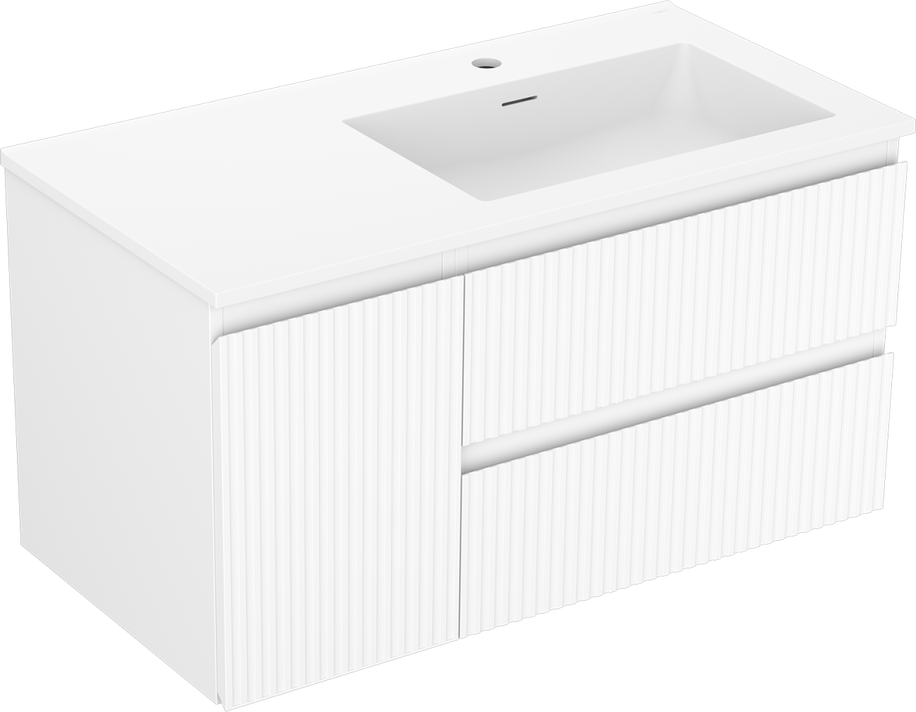 Mexen Rivel szafka łazienkowa 90 cm z umywalką Otis prawą, 2S, 1D, ryflowana, biała mat - 91A23-09047-3-BBFFF01-W18P01