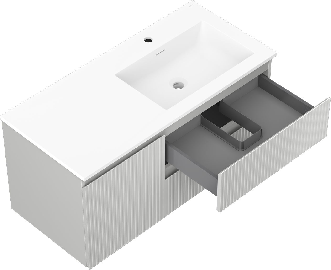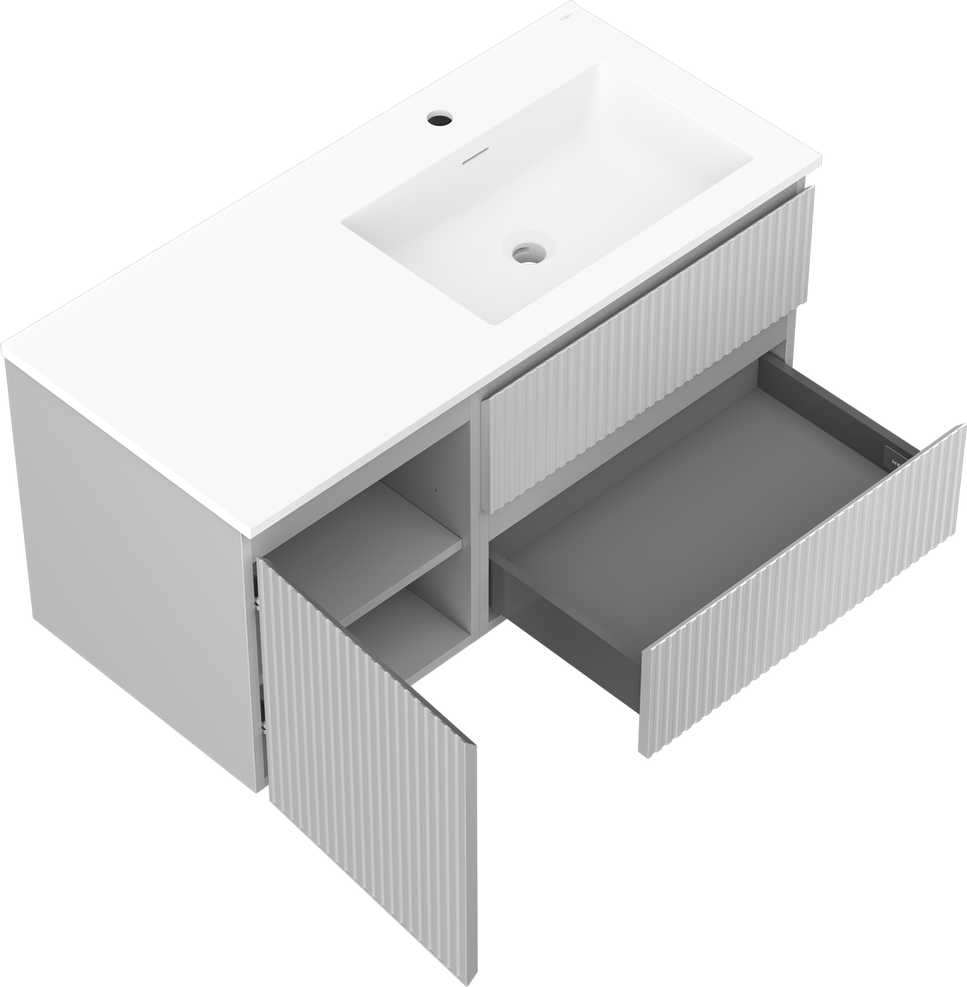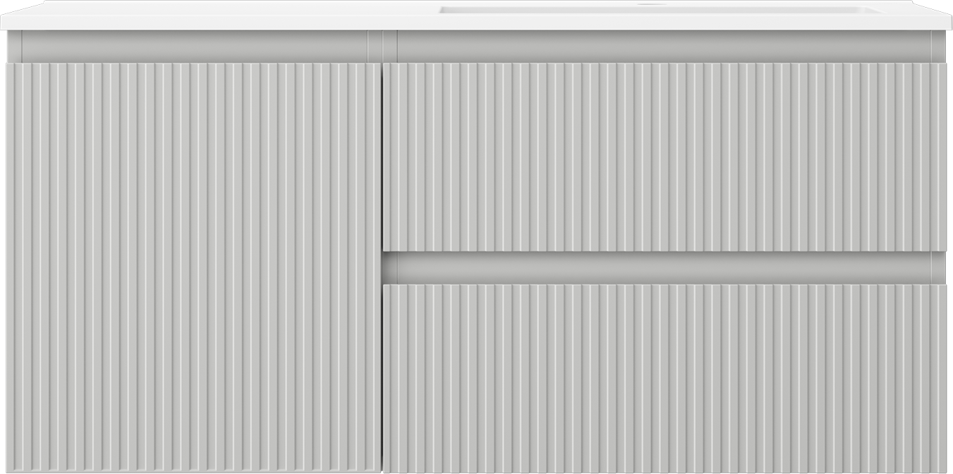 Mexen Rivel szafka łazienkowa 100 cm z umywalką Otis prawą, 2S, 1D, ryflowana, szara/biała mat - 91A23-10047-3-BBFFF62-W18P01