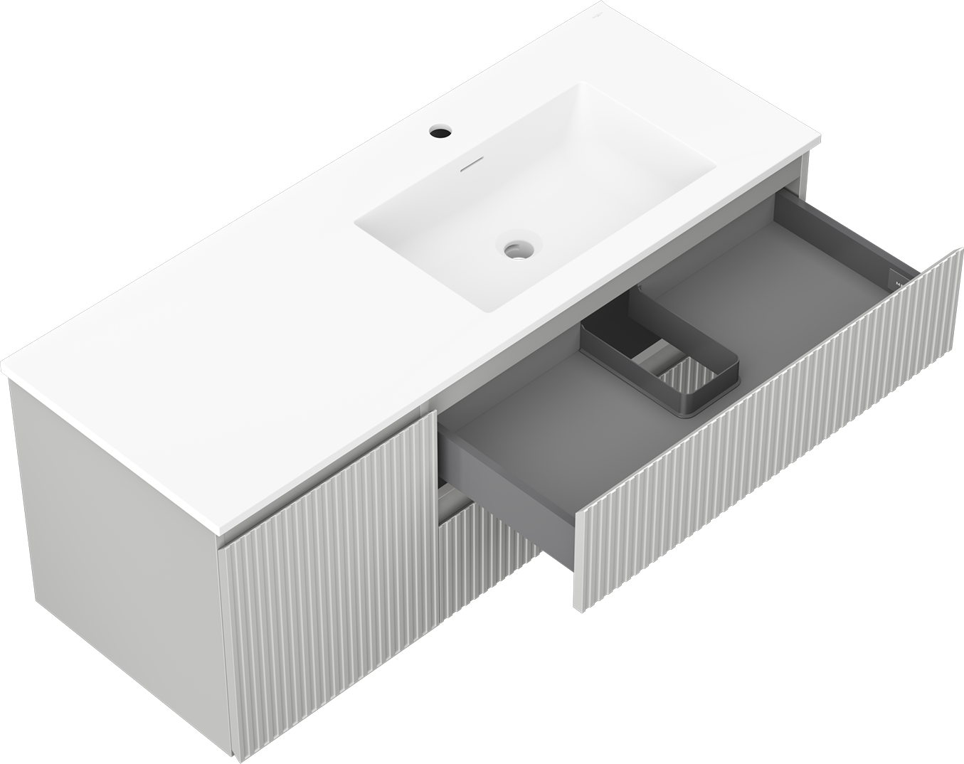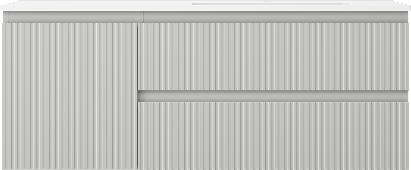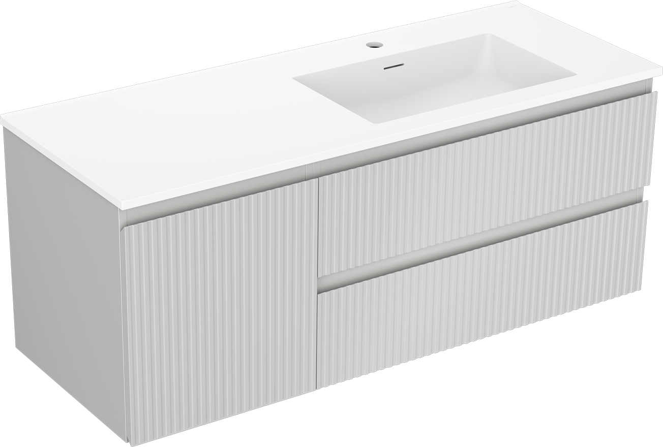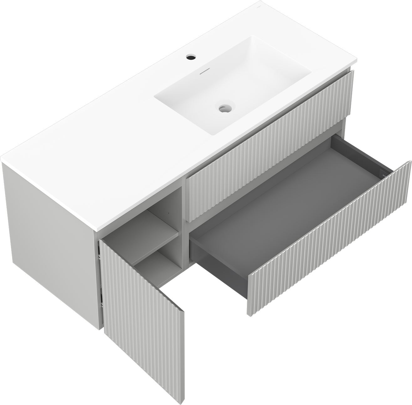 Mexen Rivel szafka łazienkowa 120 cm z umywalką Otis prawą, 2S, 1D, ryflowana, szara/biała mat - 91A23-12047-3-BBFFF62-W18P01