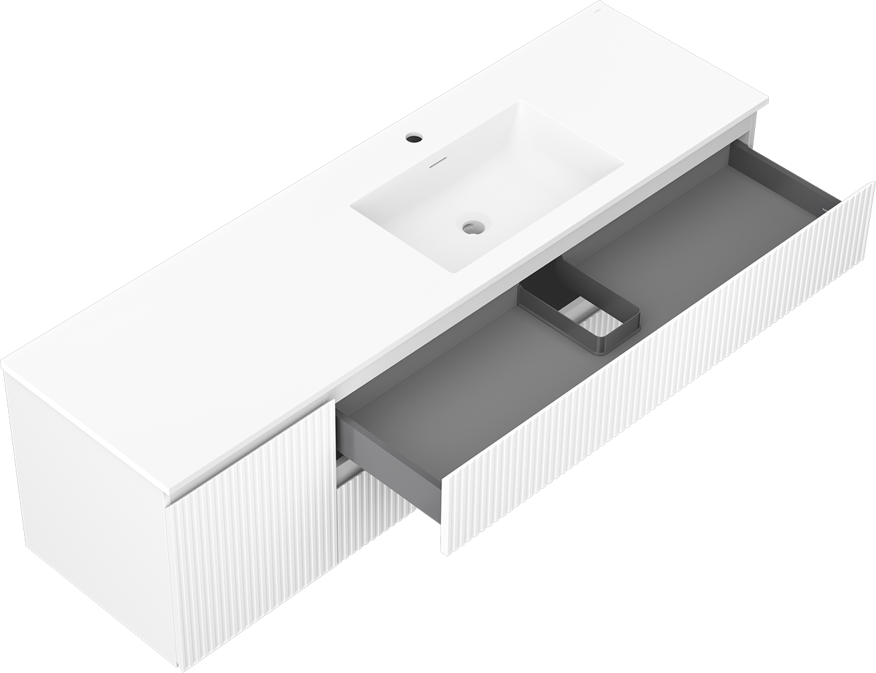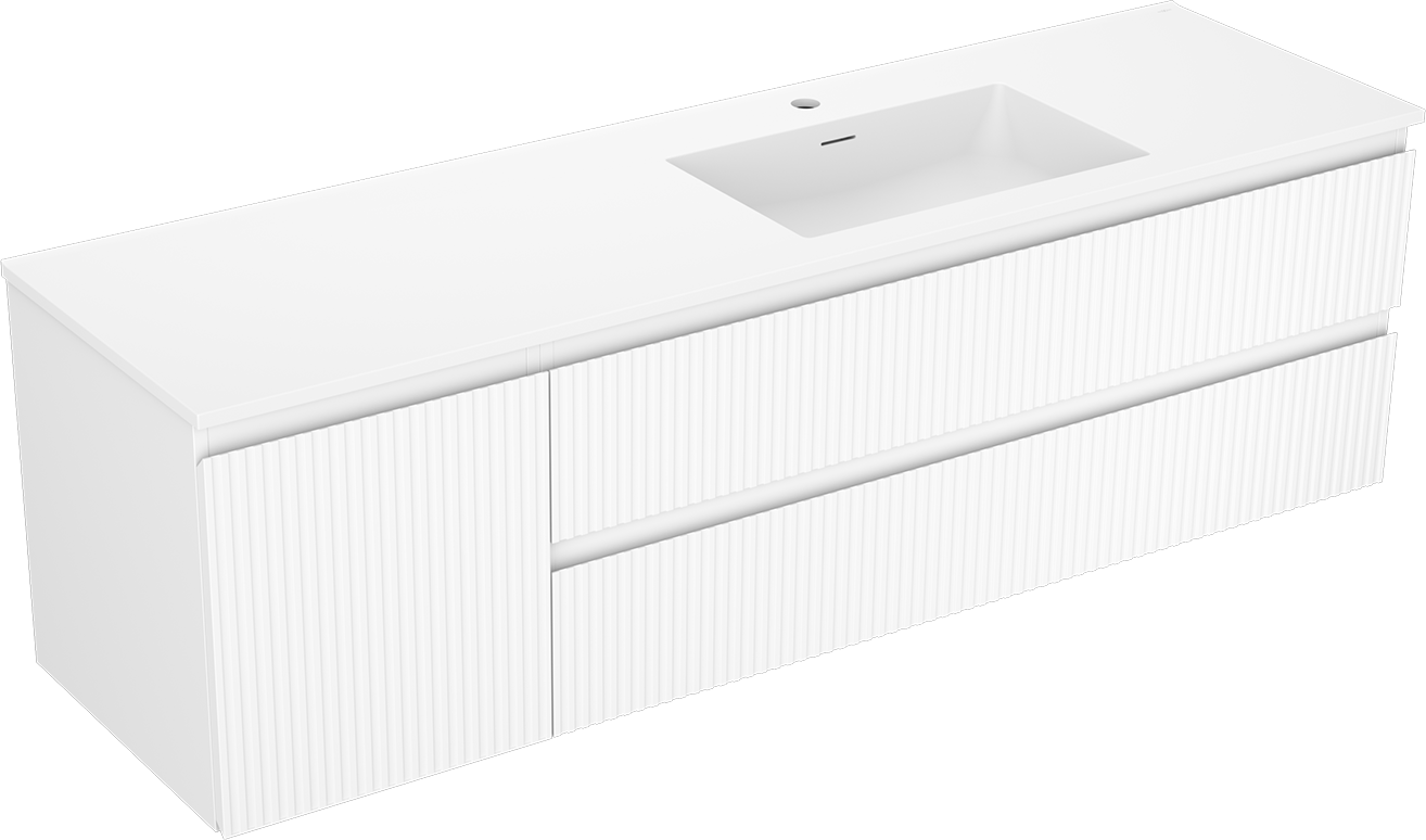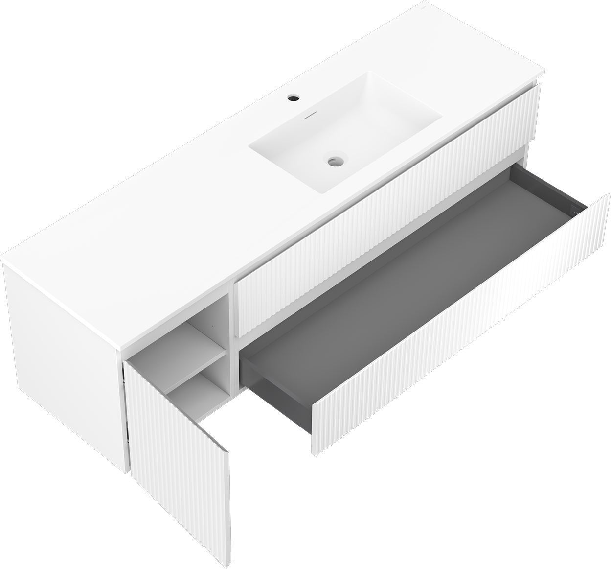 Mexen Rivel szafka łazienkowa 160 cm z umywalką Otis prawą, 2S, 1D, ryflowana, biała mat - 91A23-16047-3-BBFFF01-W18P01