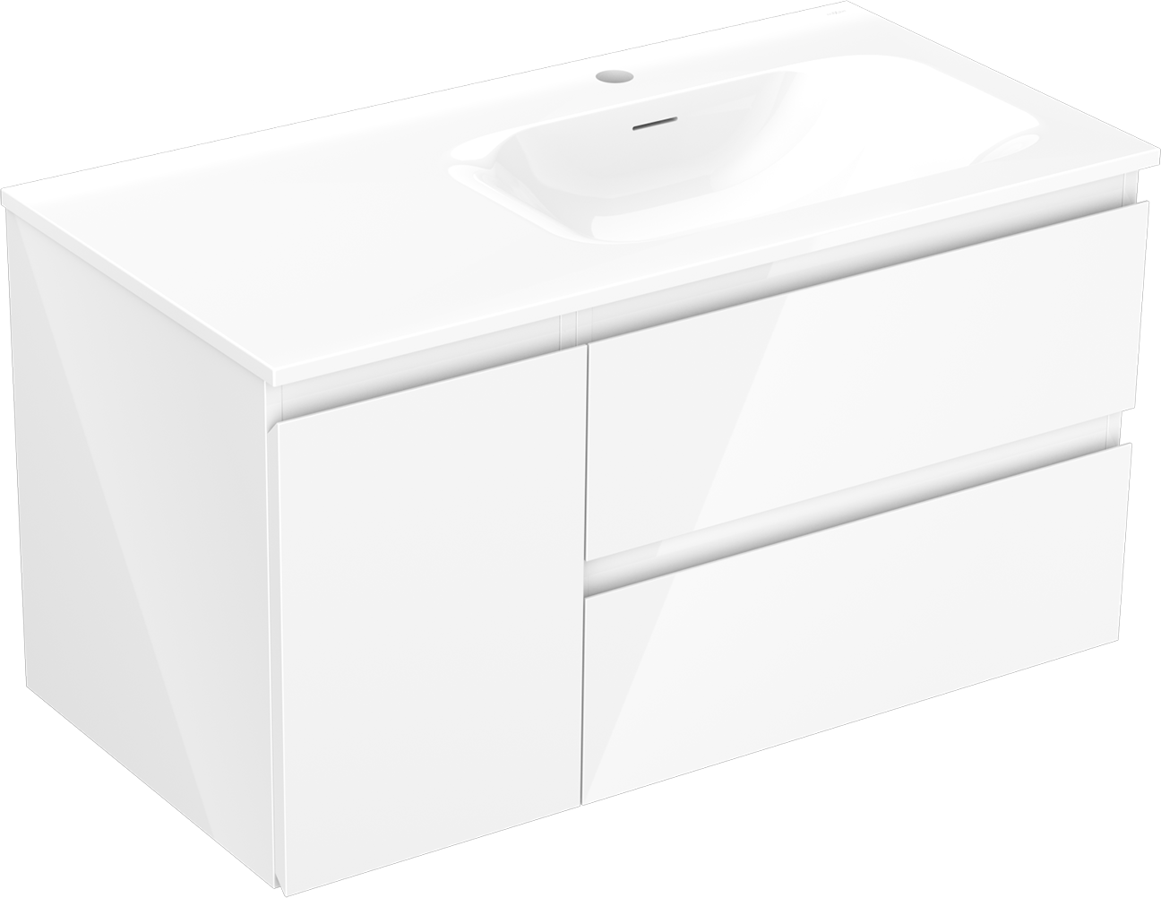 Mexen Orio szafka łazienkowa 90 cm z umywalką Vela prawą, 2S, 1D, biała połysk - 91A13-09047-3-BBFFF00-W23P00