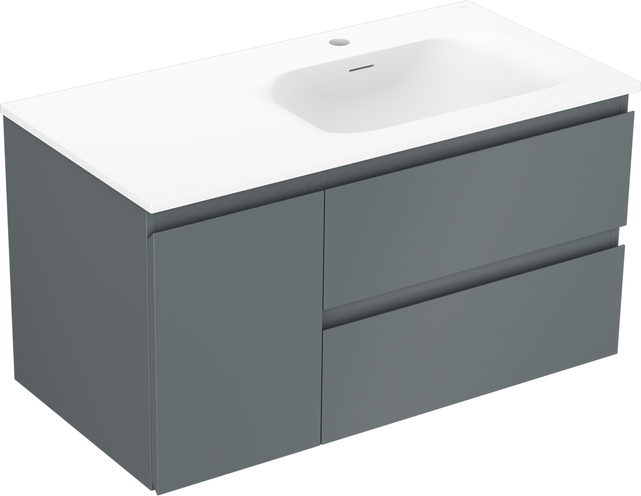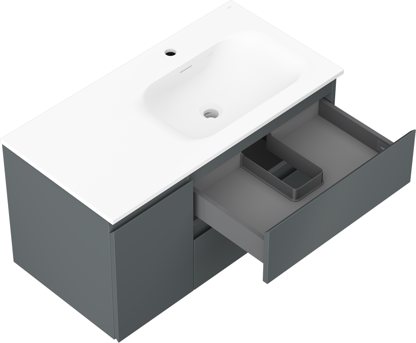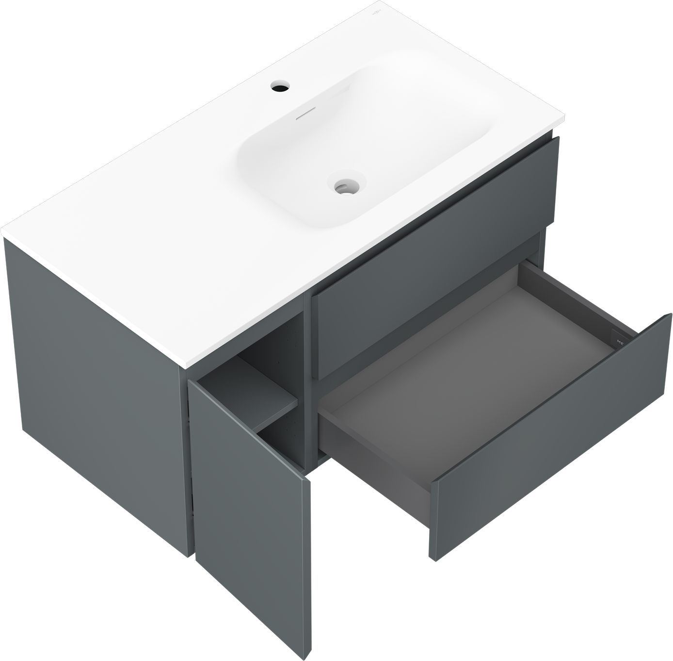 Mexen Orio szafka łazienkowa 90 cm z umywalką Vela prawą, 2S, 1D, grafit mat/biała mat - 91A13-09047-3-BBFFF66-W23P01