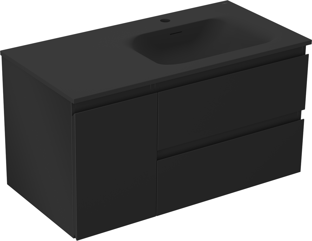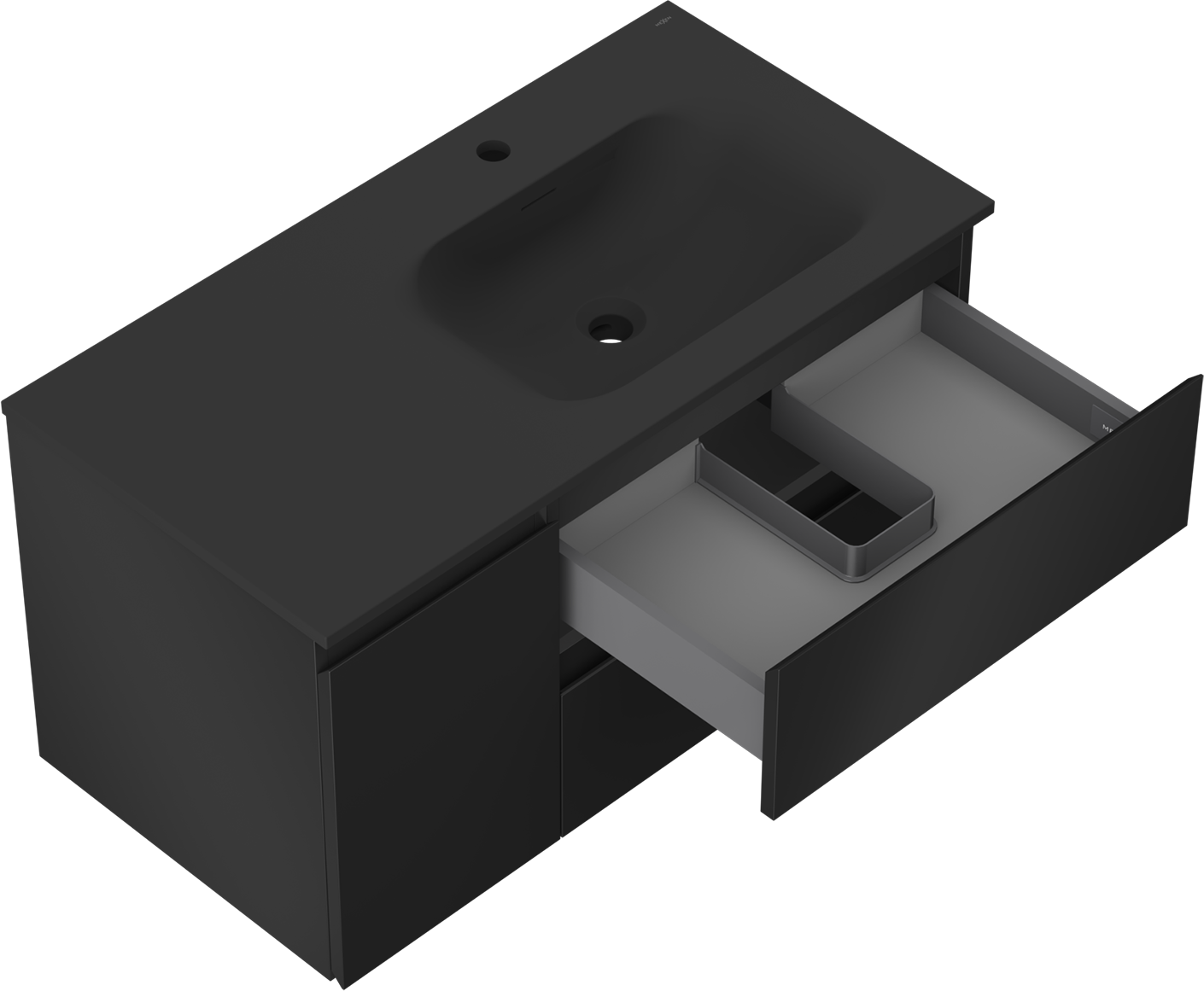 Mexen Orio szafka łazienkowa 90 cm z umywalką Vela prawą, 2S, 1D, czarna mat - 91A13-09047-3-BBFFF71-W23P71